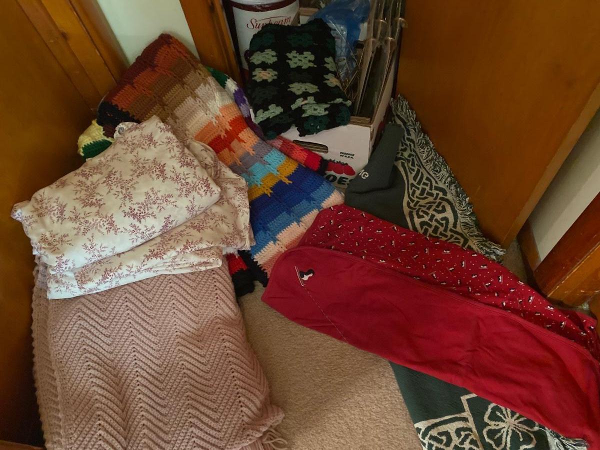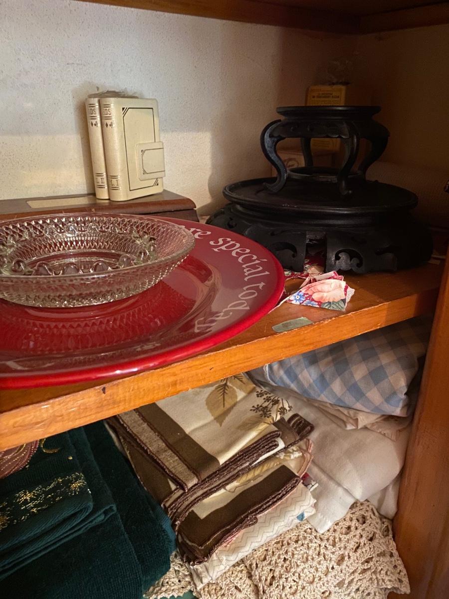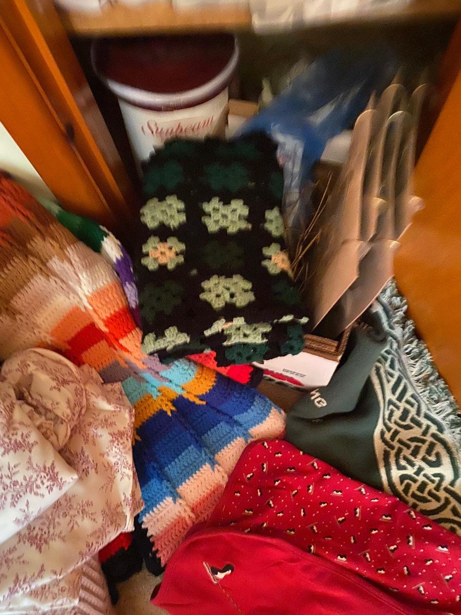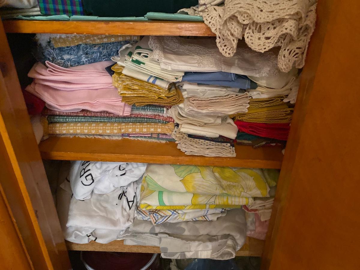 Contents include sheets, towels, doilies, blankets, small glassware, vases and more. Please see all pictures as they are the best representation of the items. The pictures show condition, measurements if taken, and what is included in the lot. Due to the large amount that we photograph and the time frame, we are not always able to take measurements. All items unless noted, are pre-owned and have been used. If you purchased furniture, you must bring help. We do not allow one person to carry large furniture out on their own. Bring help, tools and a truck for the safety of our client’s homes, and your personal safety. Any damages that result to the property including walls, and floors due to moving of the furniture will be charged to the buyer. Company policy. Thank you.