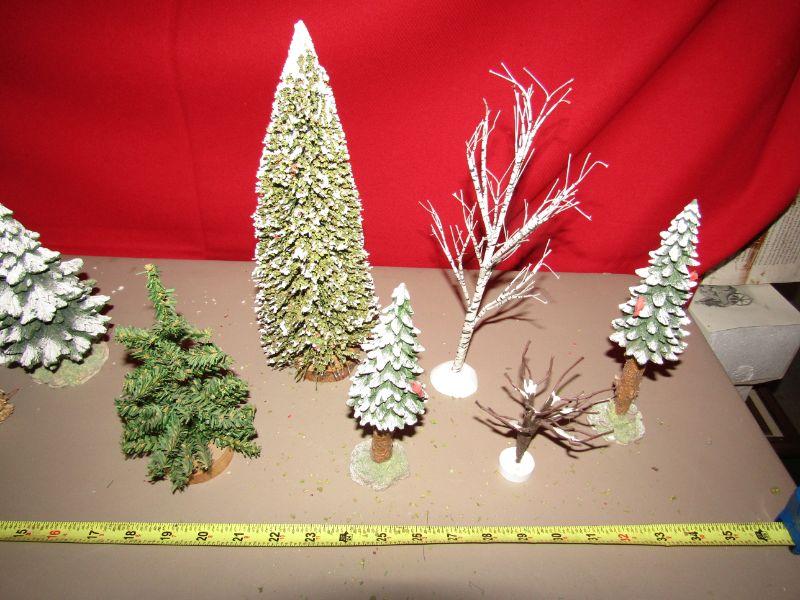 MOST OF THESE TREES ARE DEPT 56. THE LARGEST IS APPROX 20" TALL