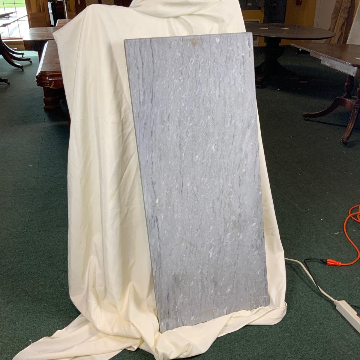 Nice Grey Marble Slab. Endless possibilities! //::\\ Please see photos for details and condition. No attempt has been made to hide any imperfections. All items listed in this auction are warehouse items, and need to be cleaned. A majority of the items need restoration as well. All items are sold AS IS and WITHOUT GUARANTEE. If you are uncertain about an item, DO NOT BID. Due to the nature of this online auction in-person inspection is HIGHLY recommended. All Sales are FINAL. Pick Up Times are FIRM. Please confirm with your own schedule that you can pick up in the scheduled times listed in the Terms and Conditions. Any questions please message the auctioneer. DO NOT Contact The Harp Gallery.