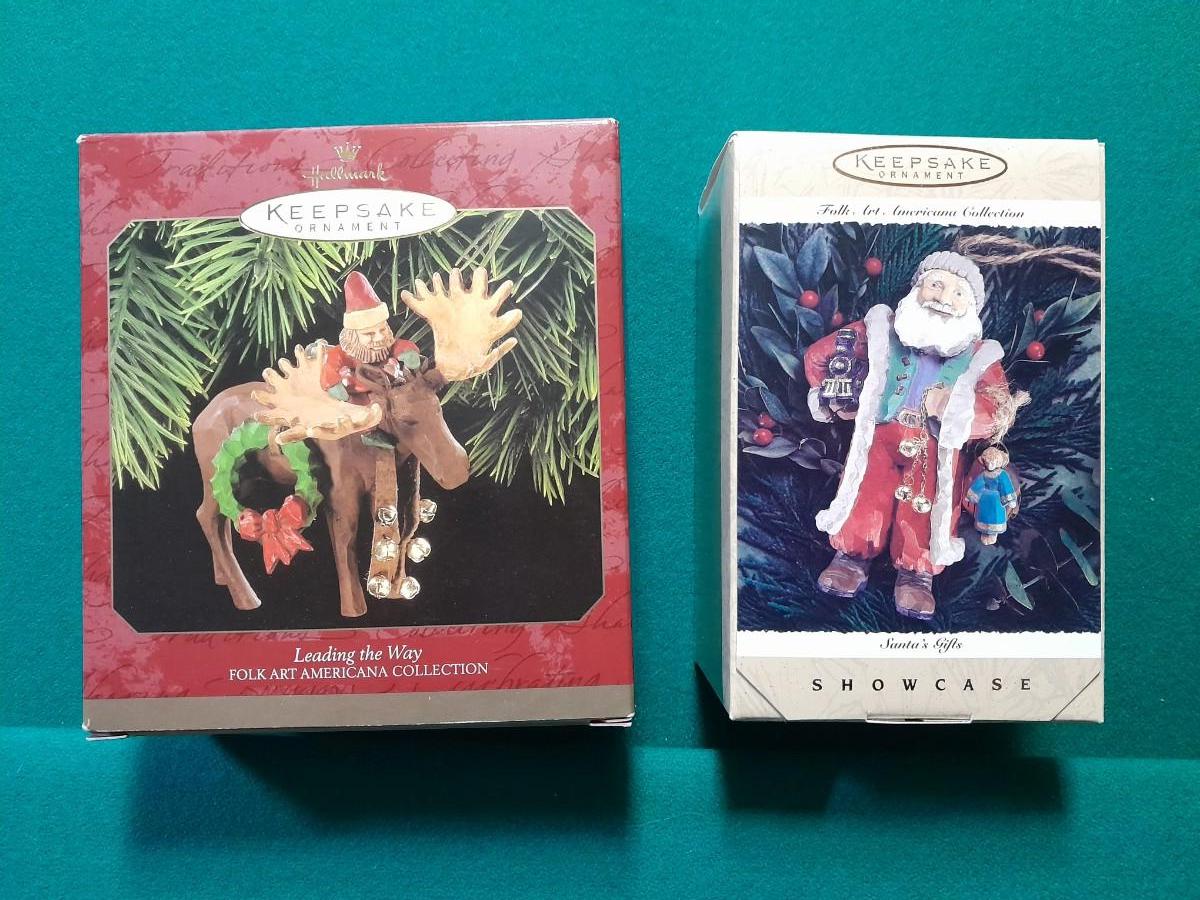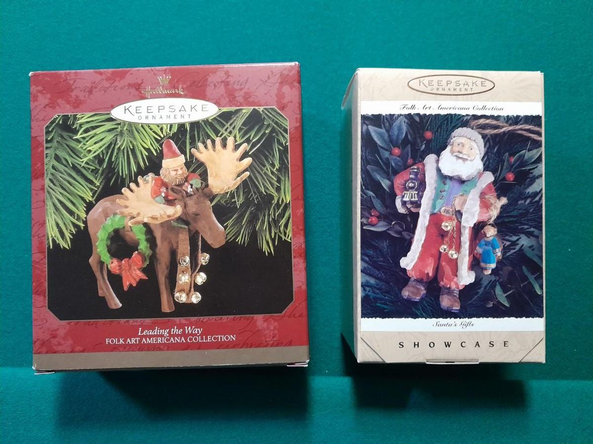 HALLMARK CHRISTMAS ORNAMENTS SANTA WITH MOOSE AND SANTA TOYS