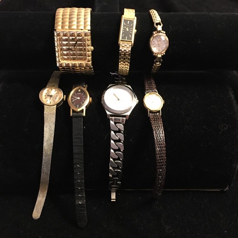 Ladies watches includes brands Timex, DKNY, Seiko, Elgin and more. All seven watches were not no tested and the Elgin is missing crown, see pictures. Go old school with these analog ladies watches.