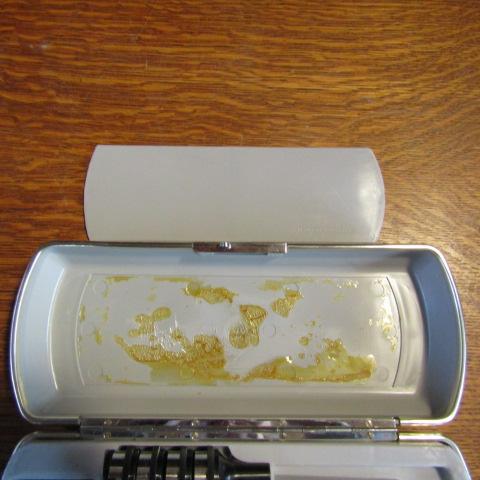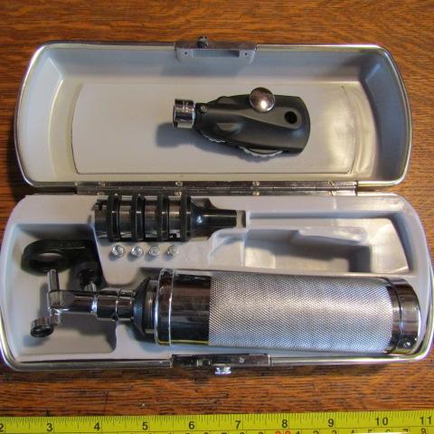RIESLER OTOSCOPE MADE IN GERMANY (THE DECO PLATE ON THE INSIDE OF LID HAS COME UNGLUED)