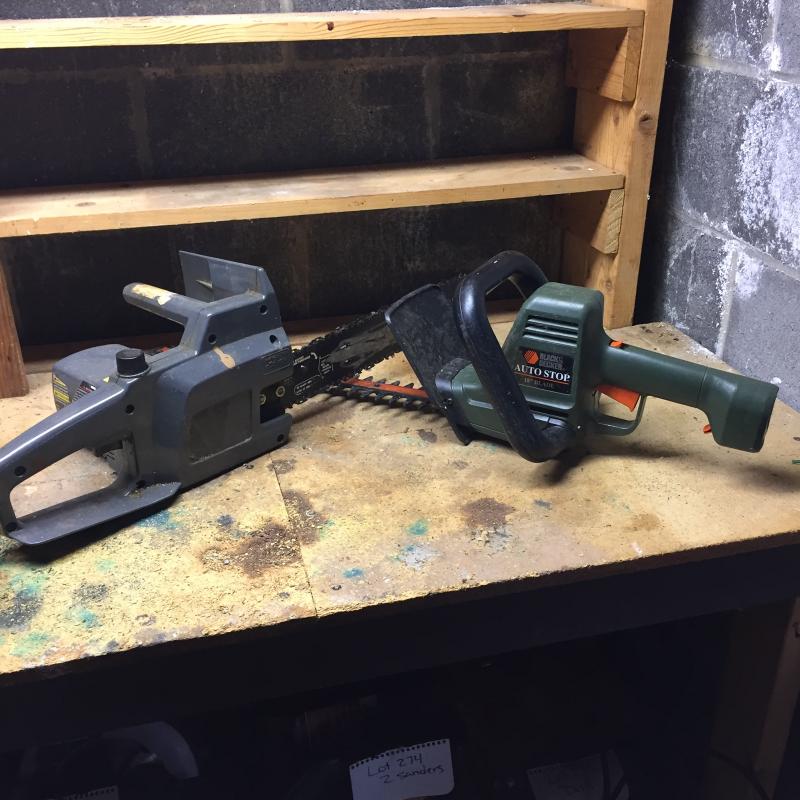 Sears 14” Electric chainsaw and Black and Decker hedge trimmer. Get your yard neat and tidy.