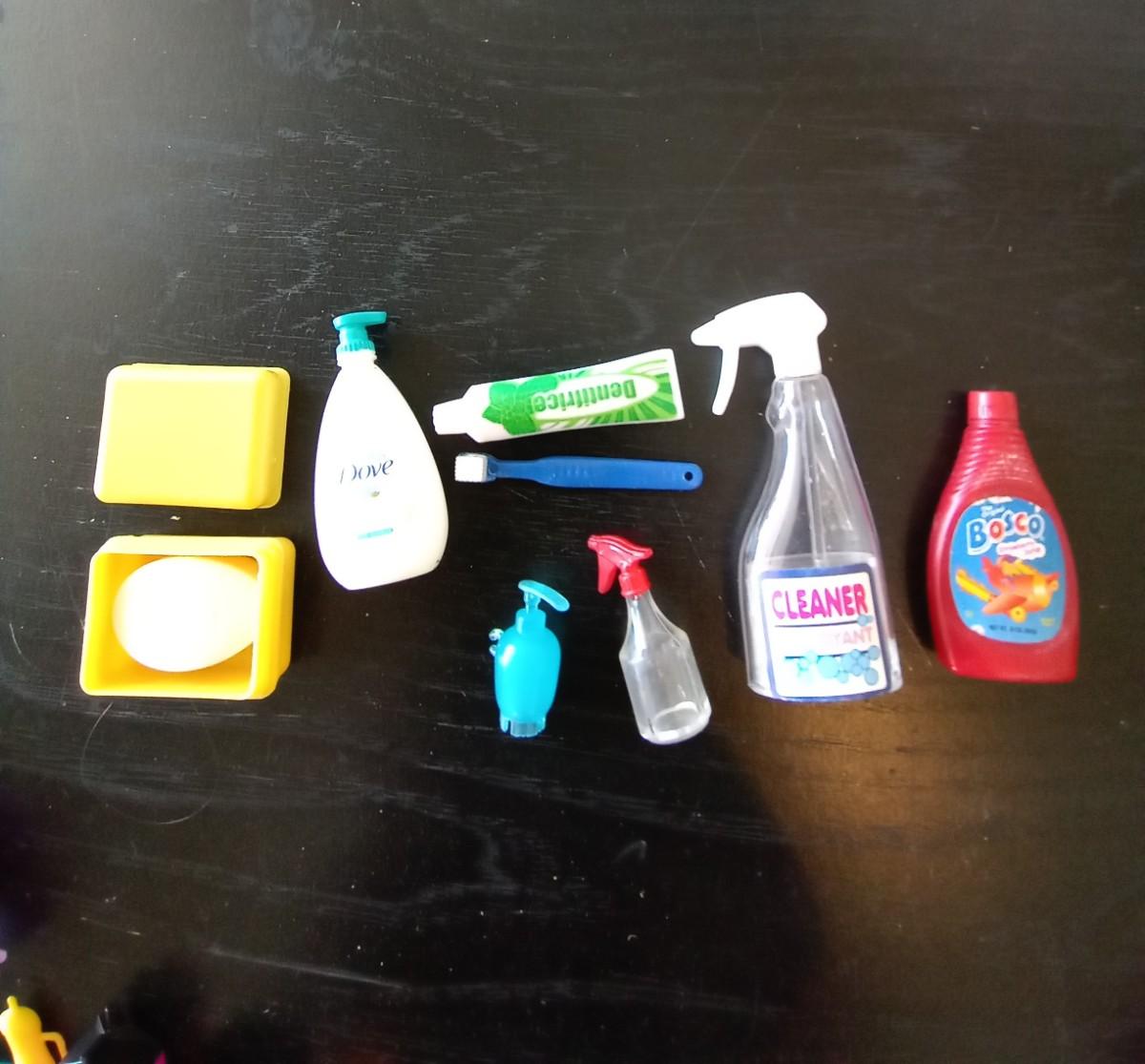 SMALL PLAYHOUSE ACCESSORIES-FOOD, KITCHEN AND HEALTH & BEAUTY ITEMS