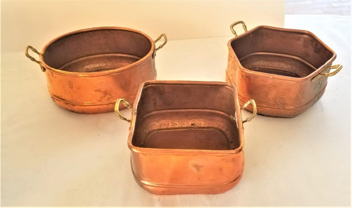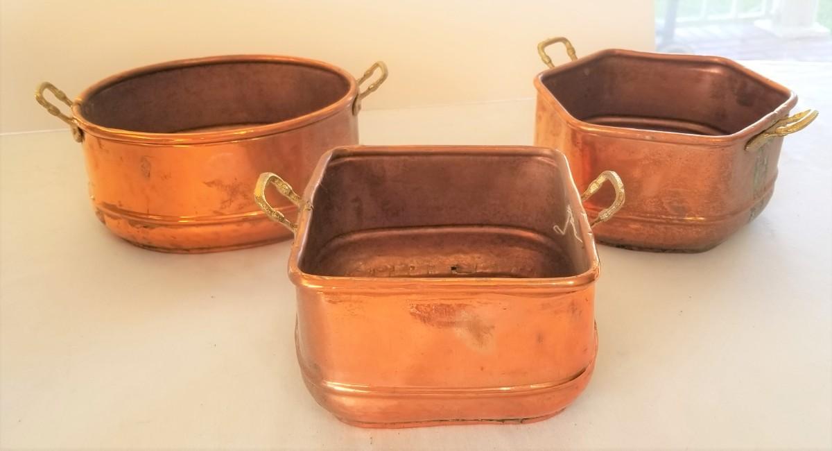Three good-looking contemporary copper decorative pots - each about 4" tall. Good condition. These have some weight to them.
