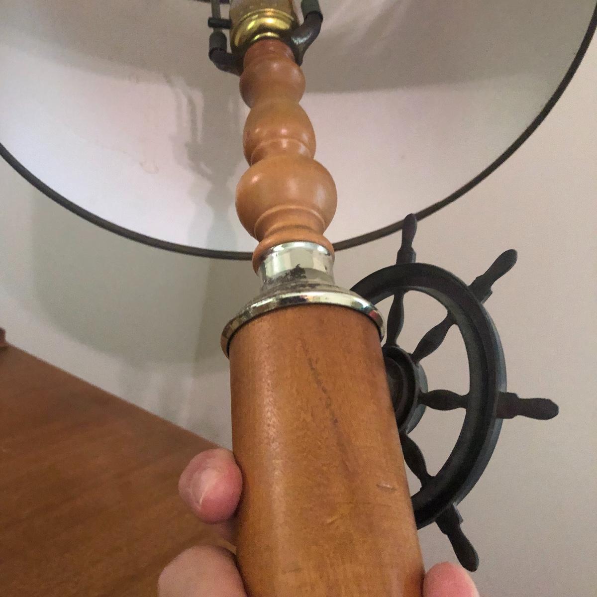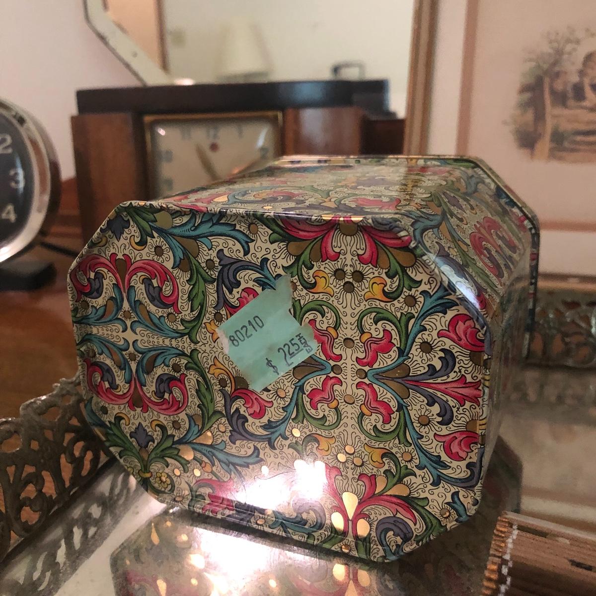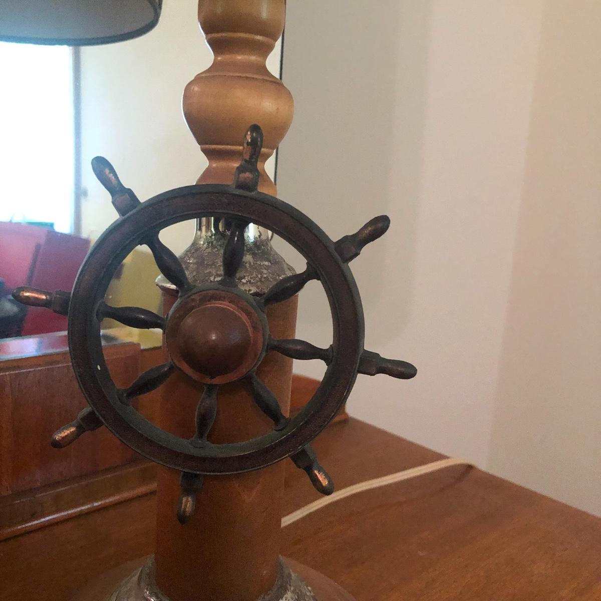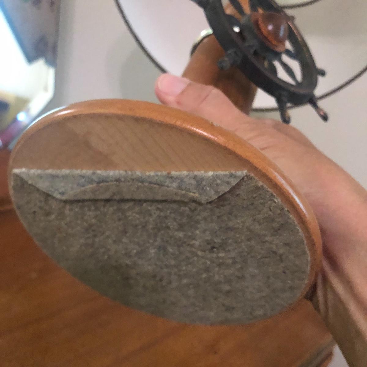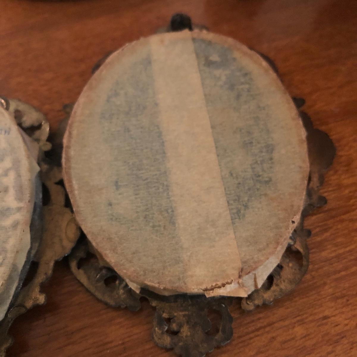 Get nostalgic with this lot! It contains a donkey bank, a Weston wind up clock (it ticks when wound), an electric GE clock (it runs when plugged in), a candle, two framed tree scenes, a leather stitched purse, two metal tins, a book, a framed picture of a girl, a lamp, two fans, a gold lined comb, a mirrored vanity tray and two glass jars with metal lids. The vanity tray measures 14.5” x 10”. The picture of the girl measures 7.5” x 8.5”. The two oval pictures measures 3.5” x 5”. And finally, the lamp stands 24” tall. The leather purse has some faint discoloration and the lamp shade’s seam is unraveling a little. Local pick up only.