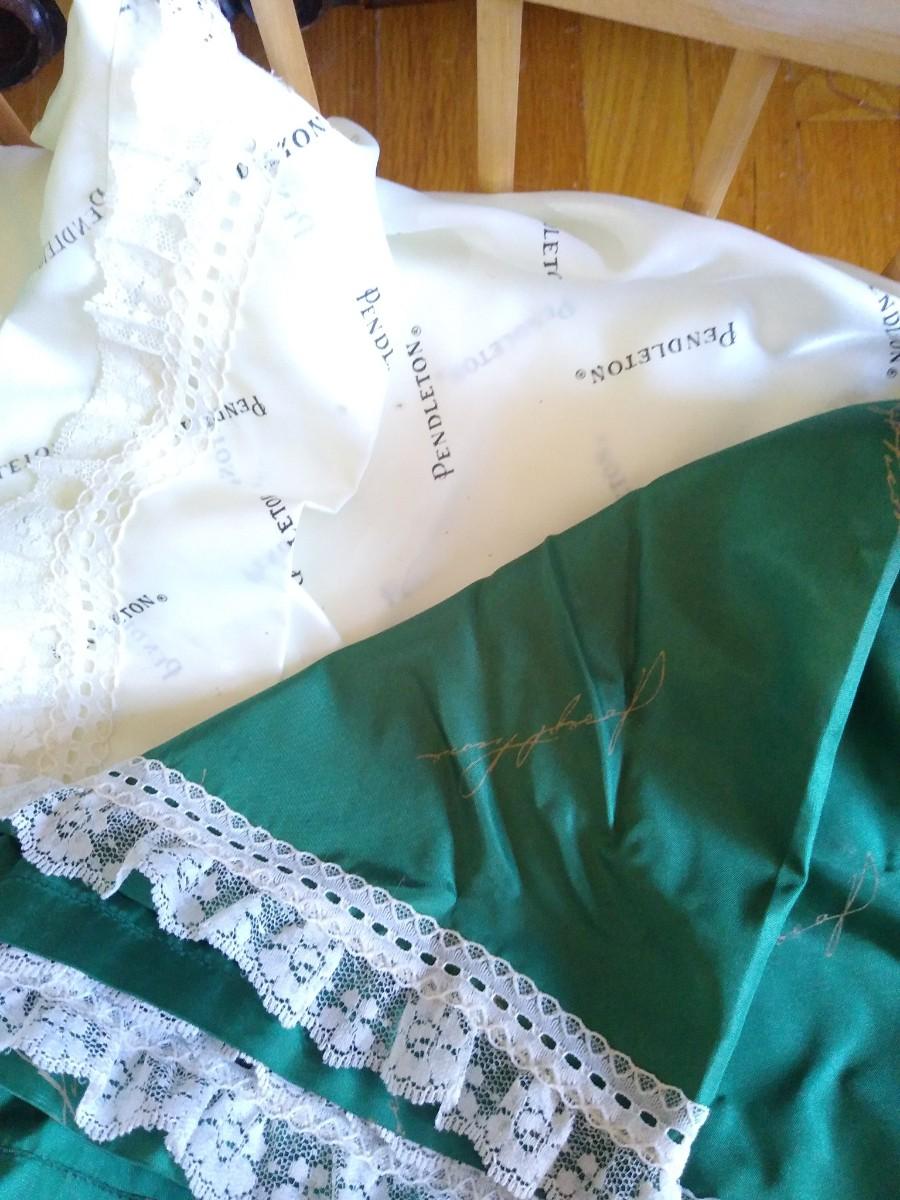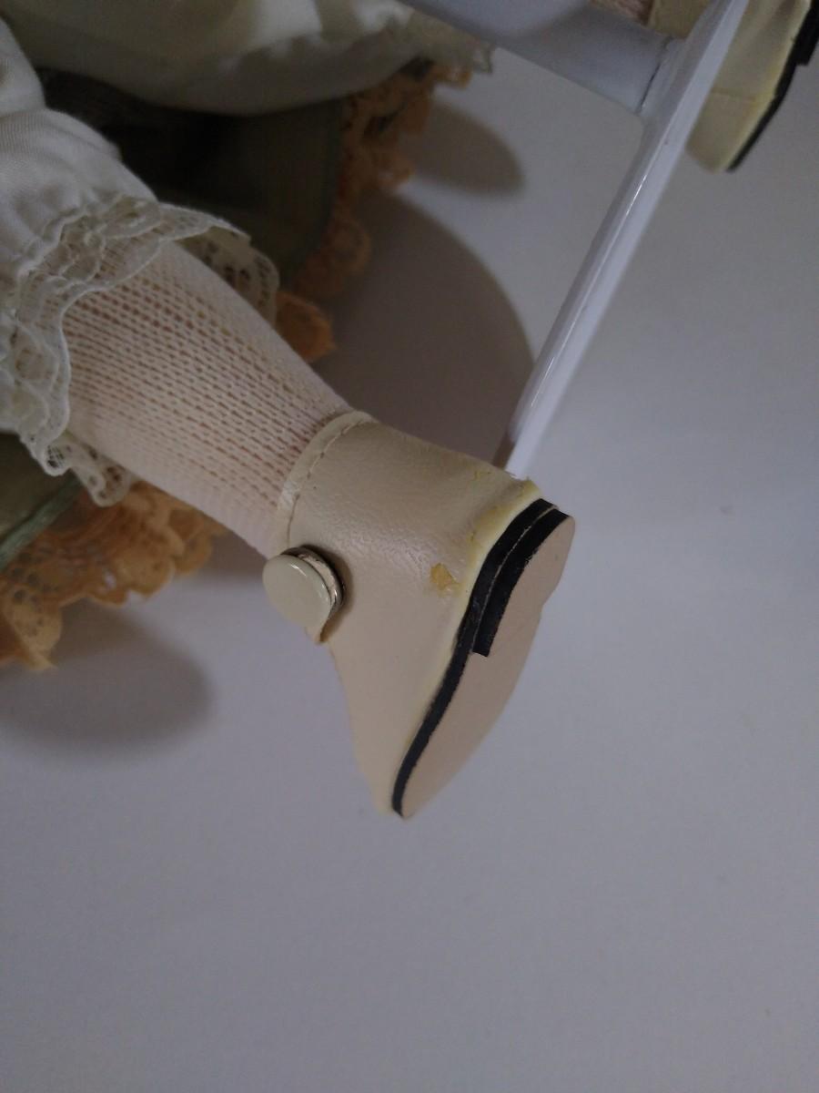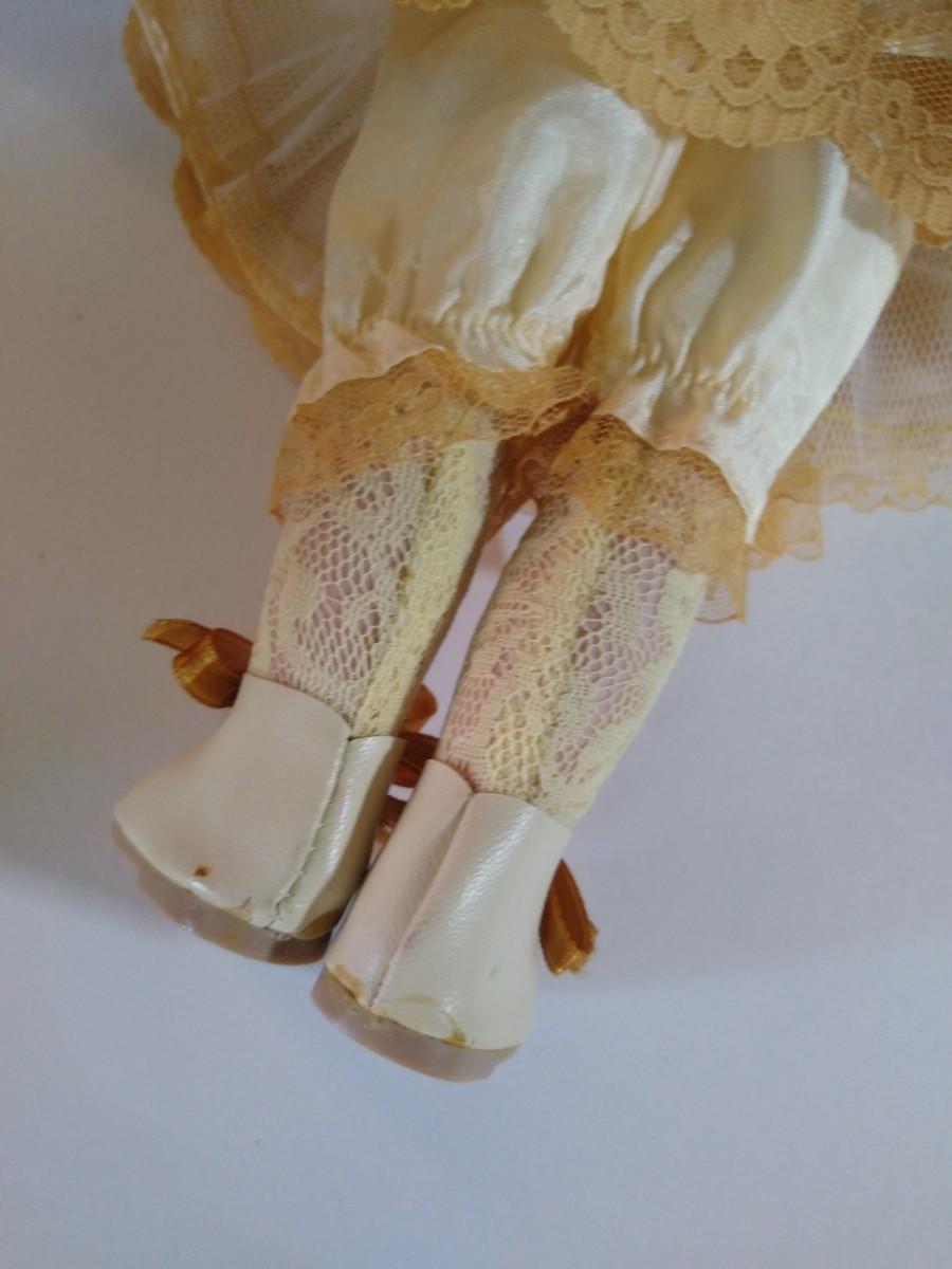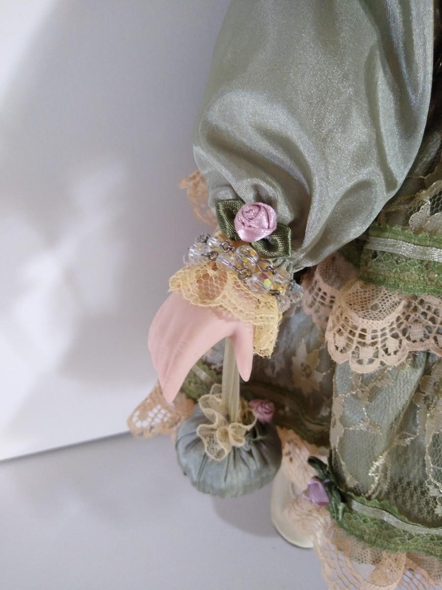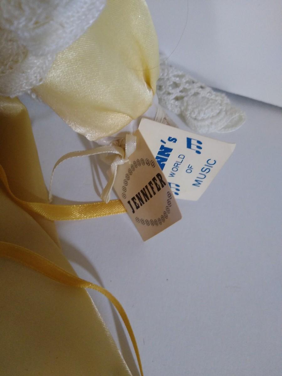 LOT 276L: Vintage Dolls- Seymour Mann Porcelain Music Box Doll, Pendleton Satin bedding inside doll crib and more