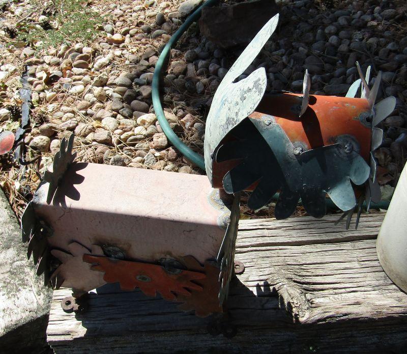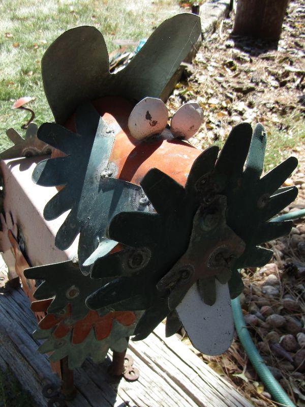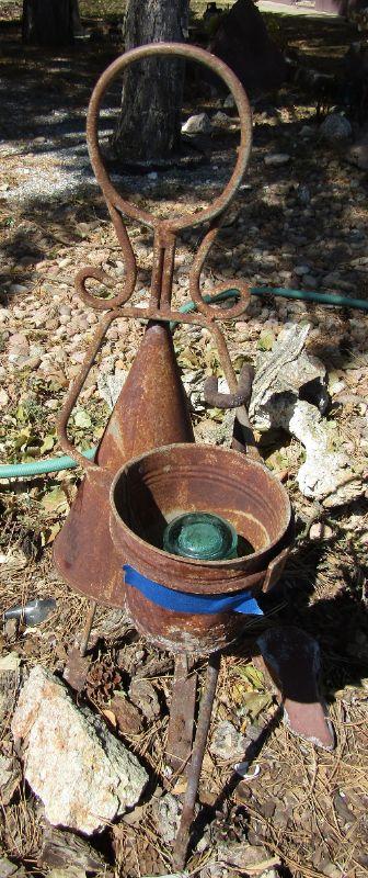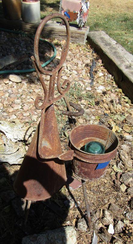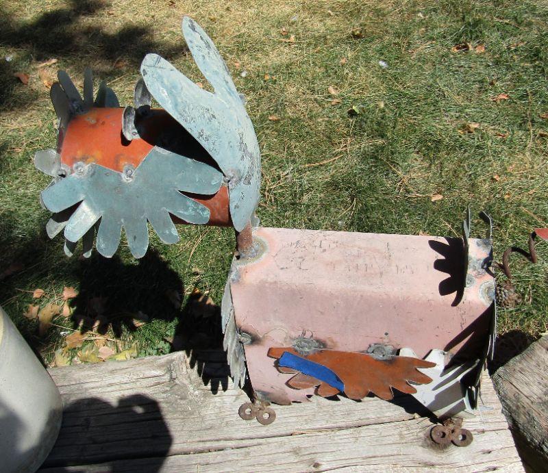 Y-33  TIN DOGGY AND METAL LADY YARD ART