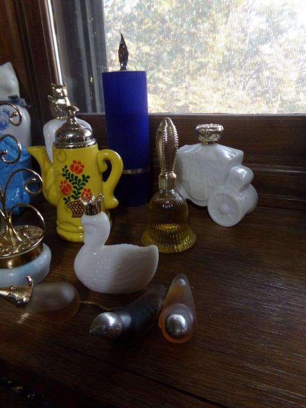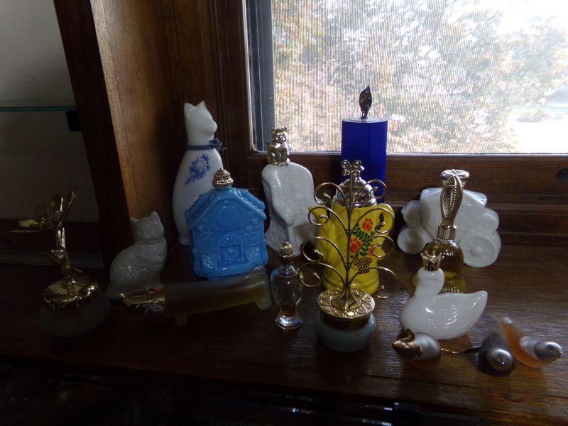 VARIOUS COLLECTABLE AVON BOTTLES (BLUE CANDLE, PITCHER, SWAN, ETC)