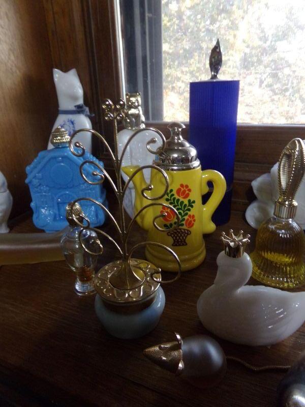 LOT 278 VARIOUS COLLECTABLE AVON BOTTLES (BLUE CANDLE, PITCHER, SWAN, ETC)