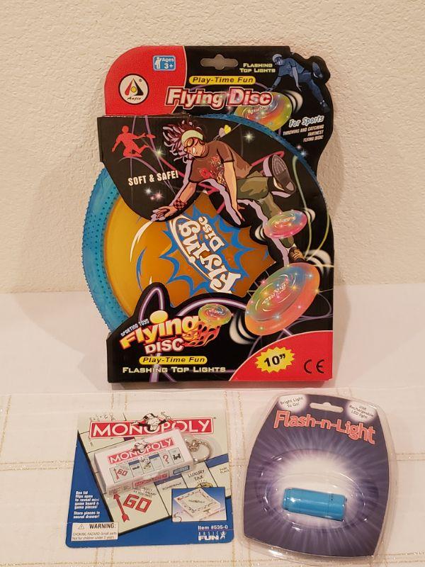 Lot 277: New Flying Disk, Monopoly Keychain Game & Flashlight