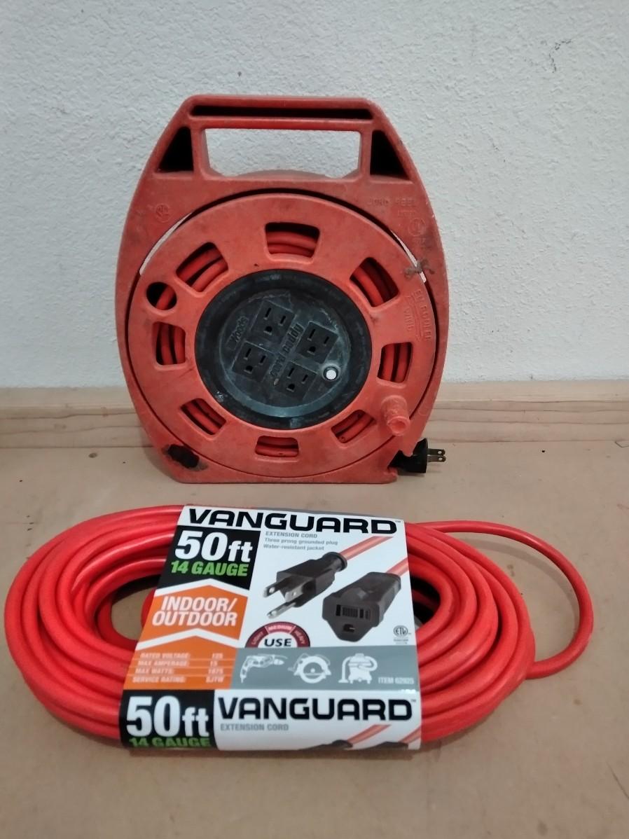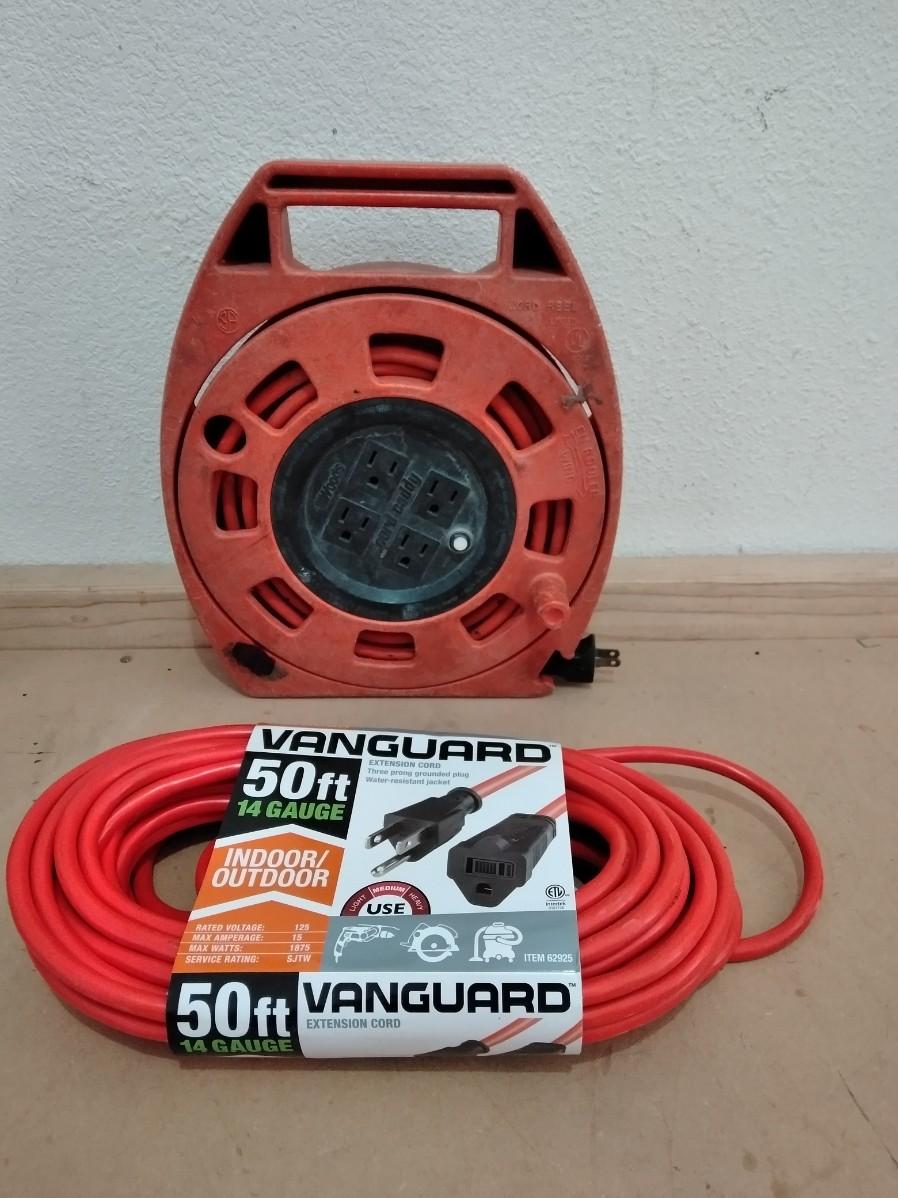 50 FOOT NEW EXTENSION CORD, AND EXTENSION CORD IN A REEL
