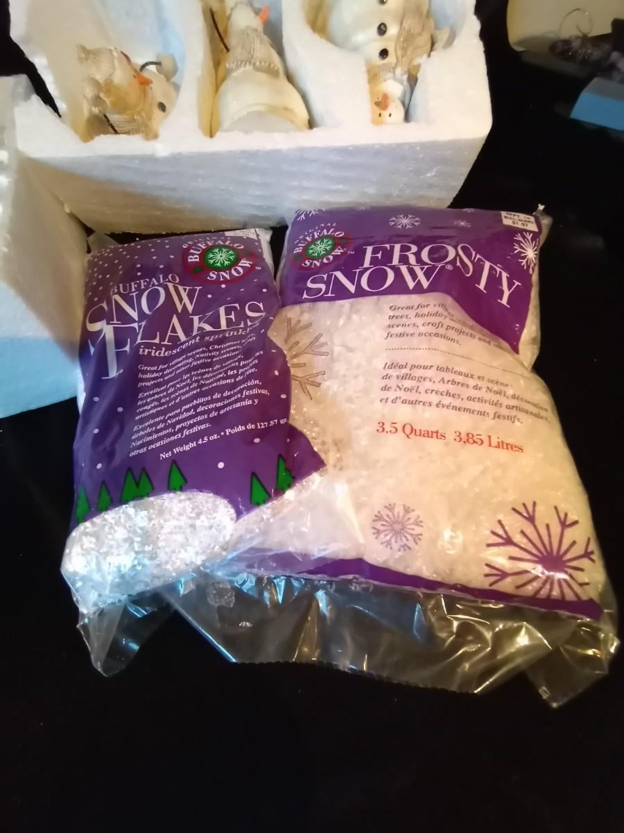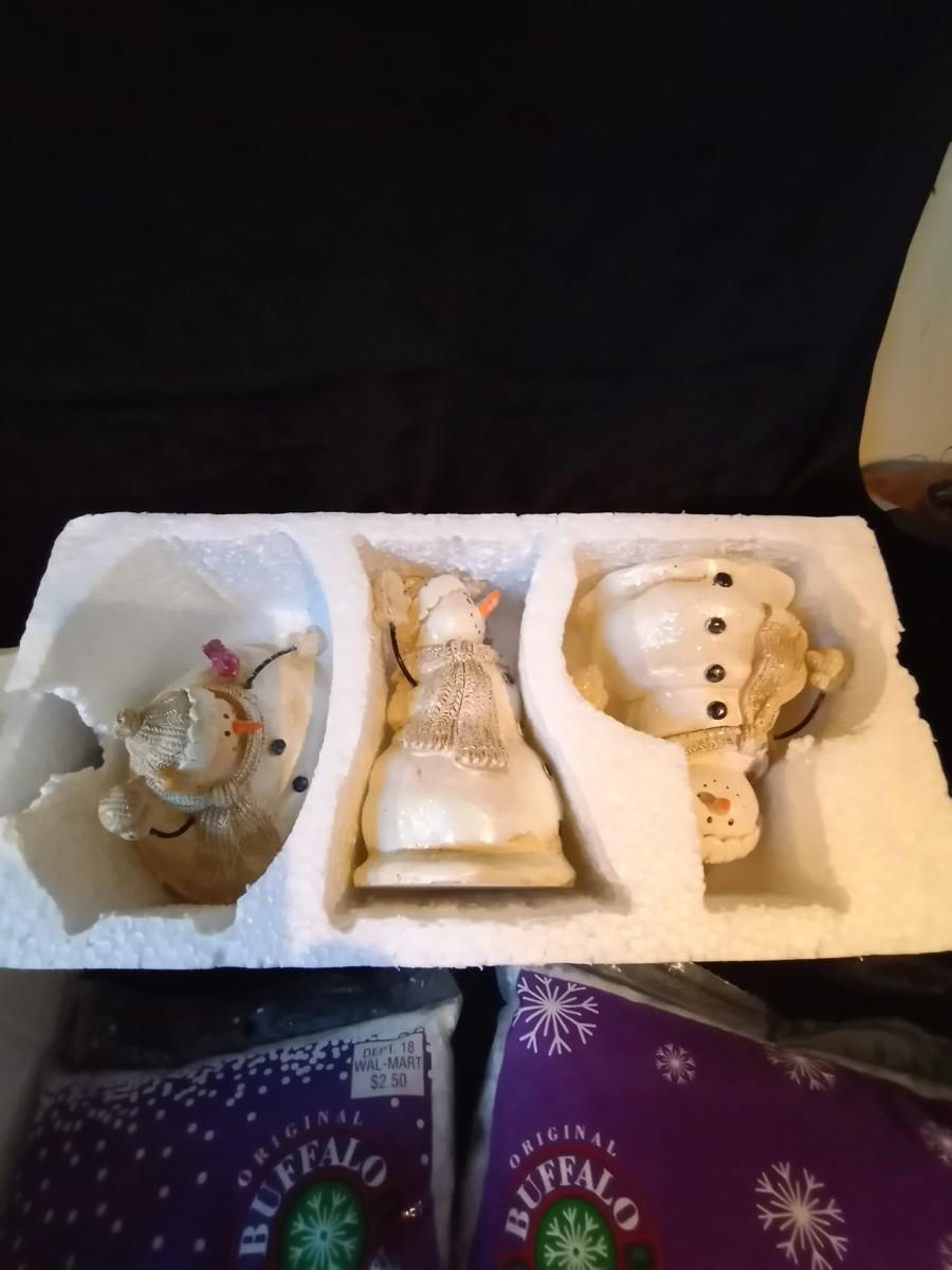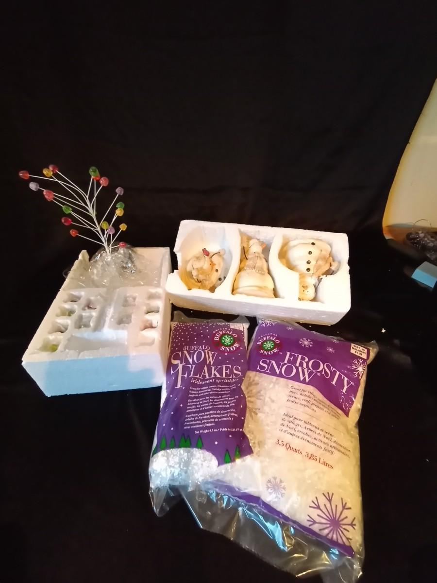 3 SNOWMAN FIGURINES-TREE BATTERY OPERATED-BAG OF SNOW FLAKES
