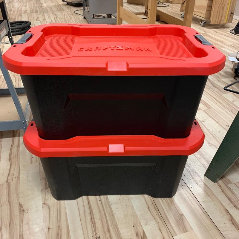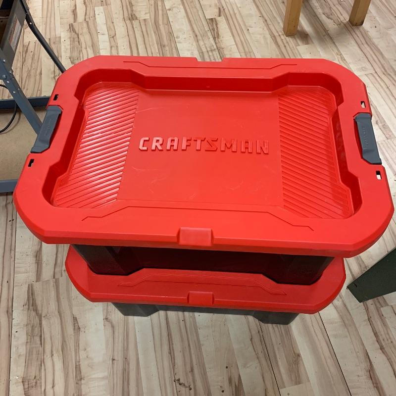 Cabinet measures 34” x 18” x 21”. Also included in this lot are two heavy duty stackable Craftsman storage bins that look new. Each measures 28” x20” x14.5”.