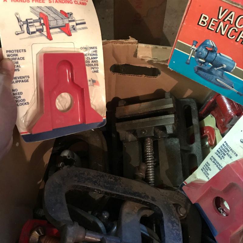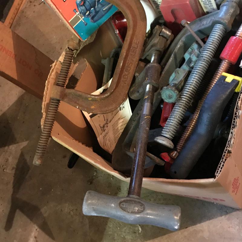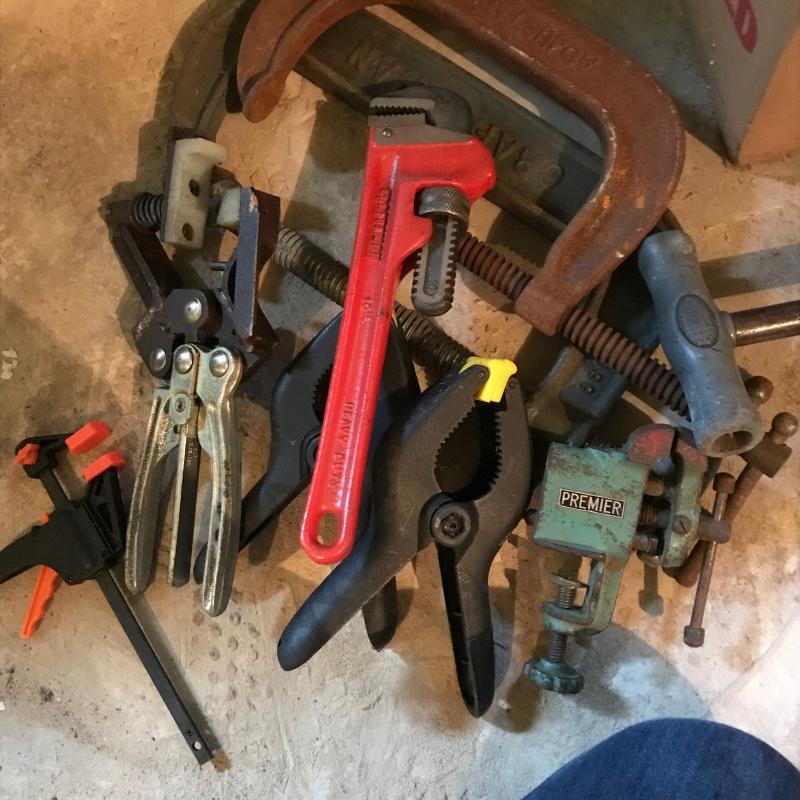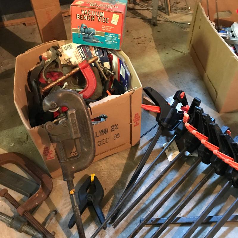 Large lot of clamps and vise. All sizes. See photos. No shipping. Local pick up only