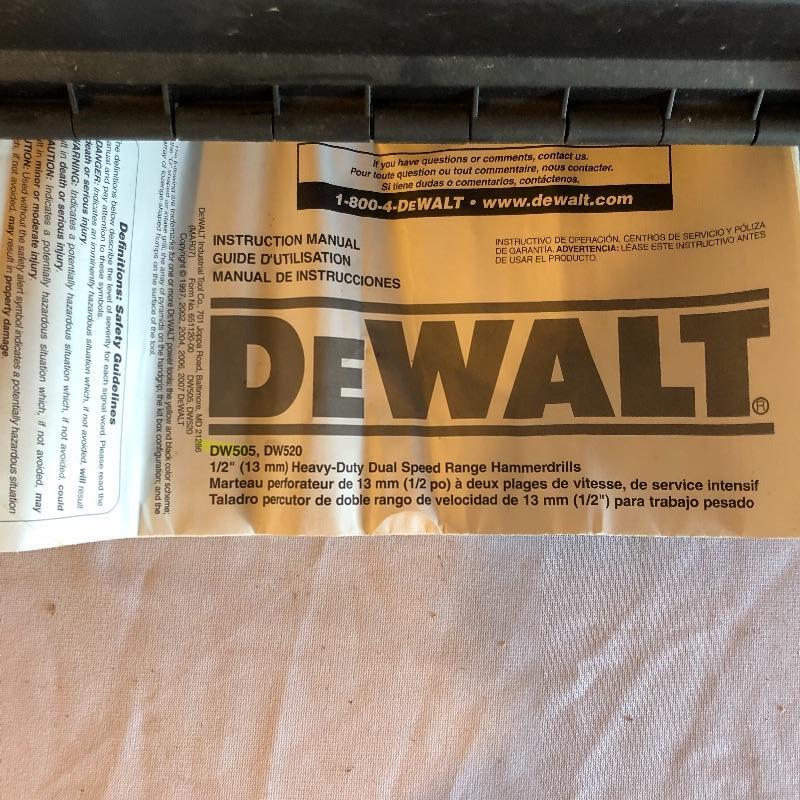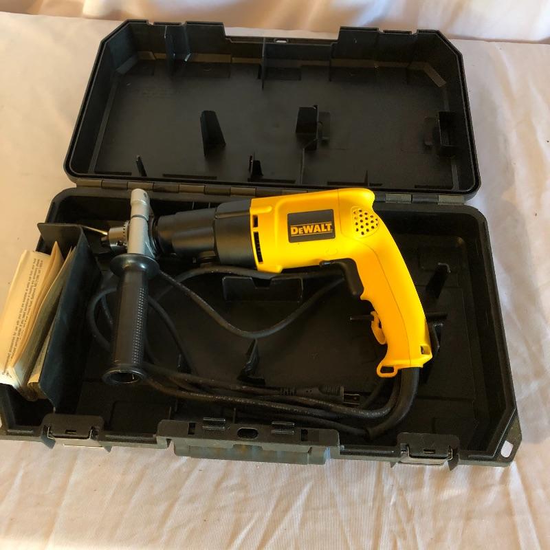 Take your drill with you with this Dewalt drill with case. Lot includes Dewalt model # DW505 1/2 inch hammer drill in a plastic case and instruction manual. Drill worked when tested.