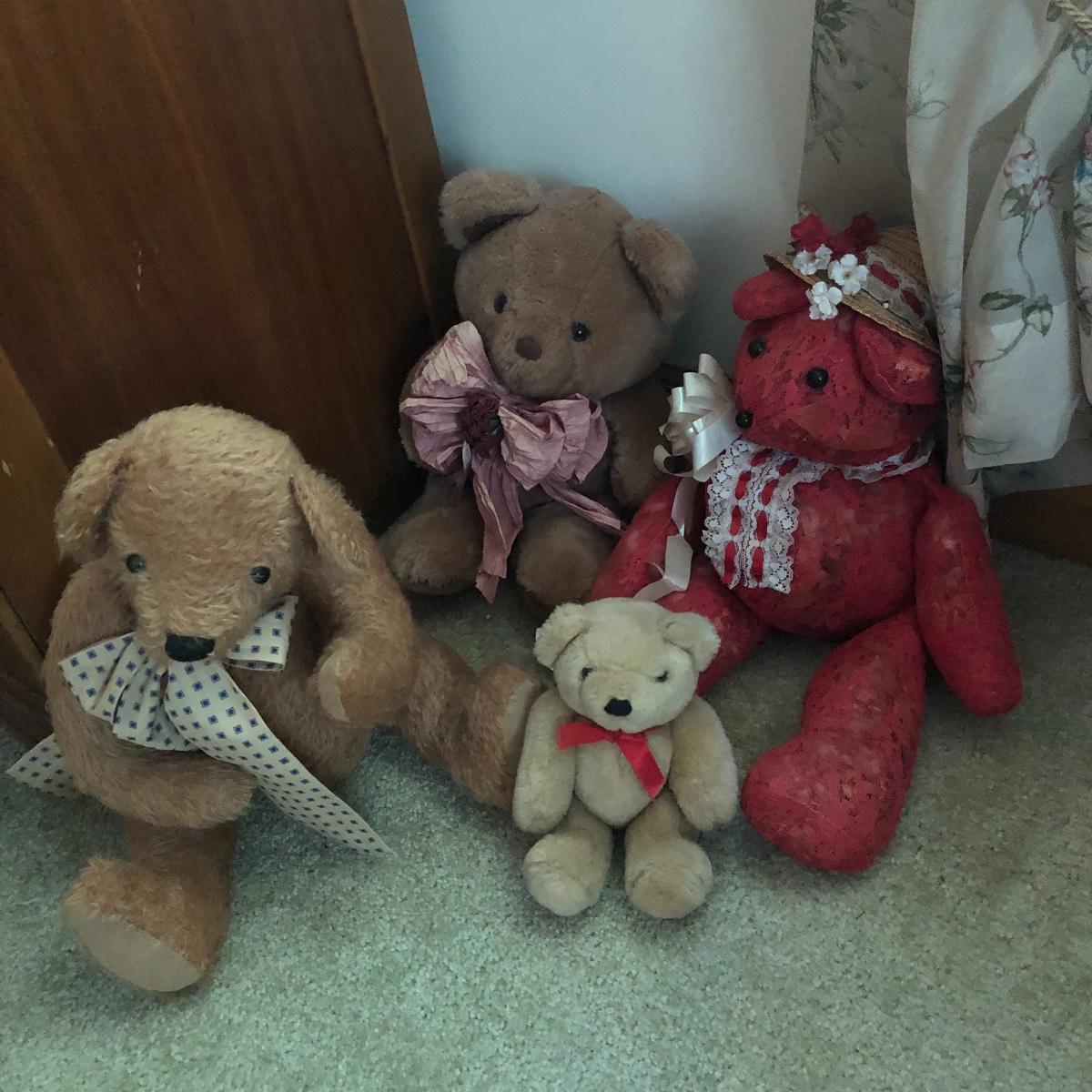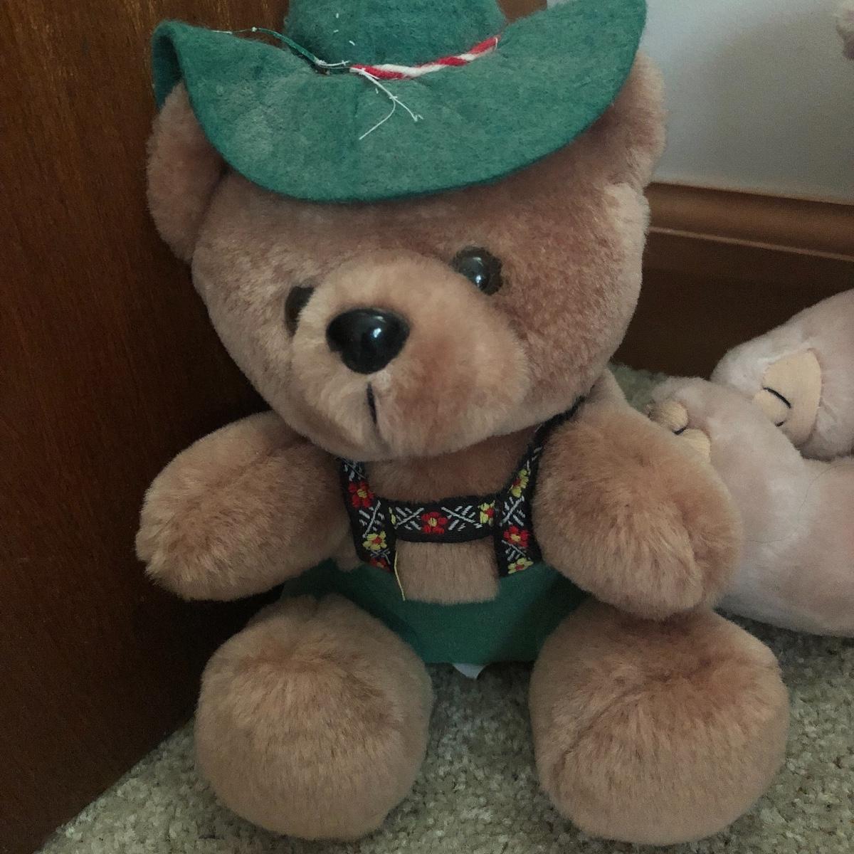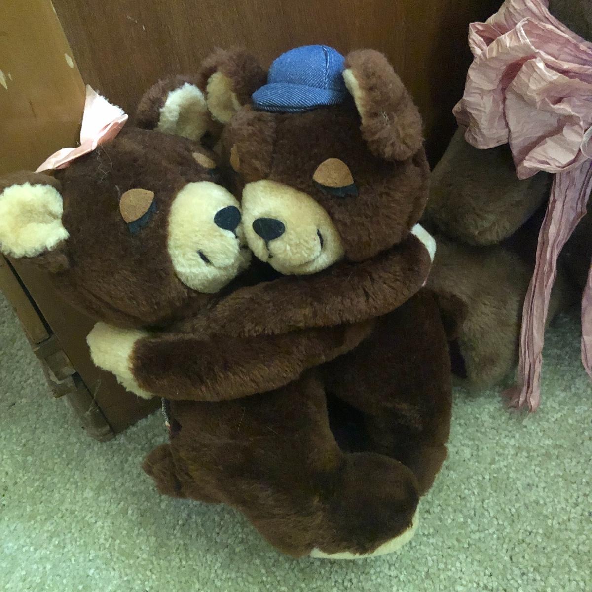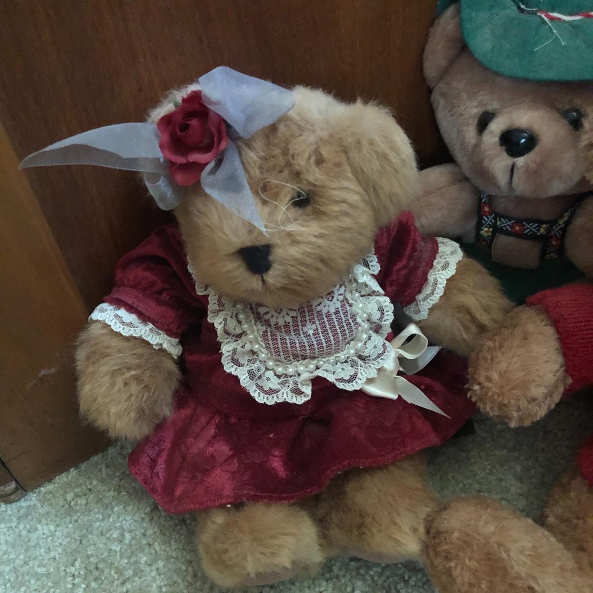 This lot includes seven wood chairs, two handmade horse dolls, two embroidered pillows, two books on teddy bears and eighteen teddy bears. The unique horse dolls are approximately 25” tall; note the metal guns in the male horse’s holster! Local pick up only.