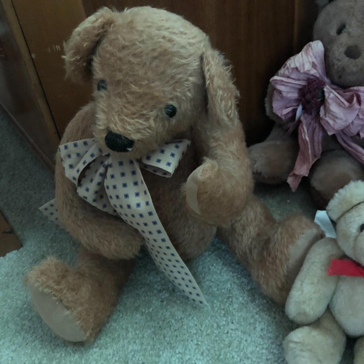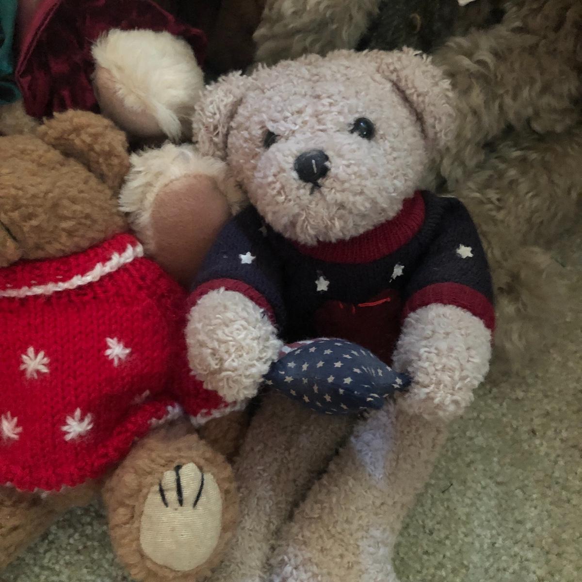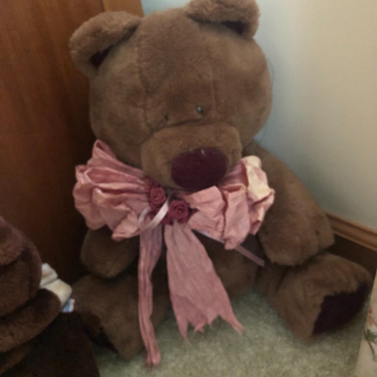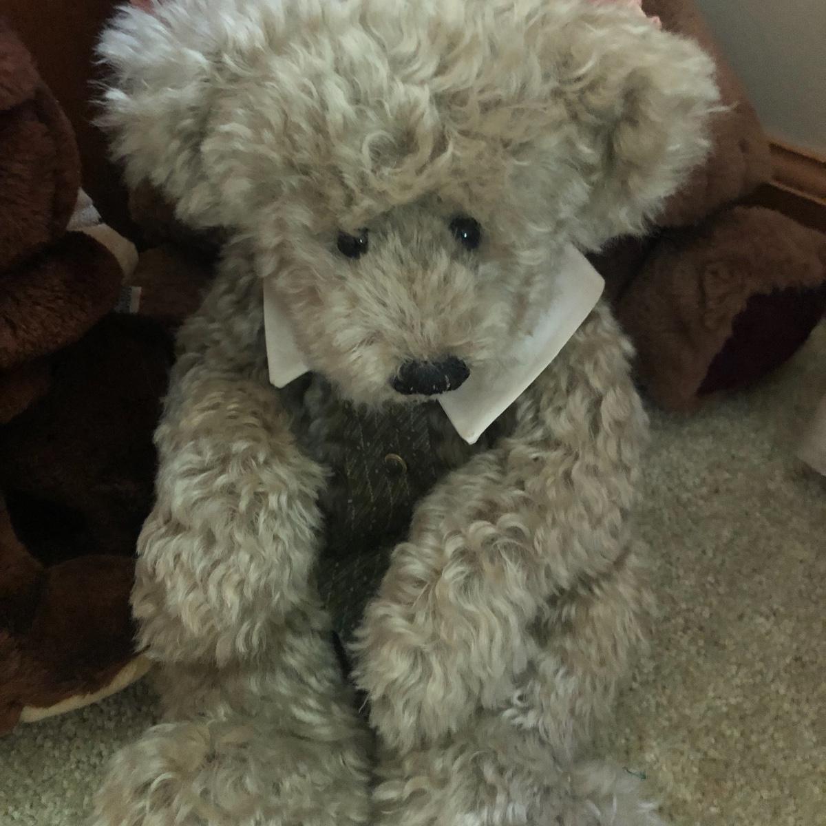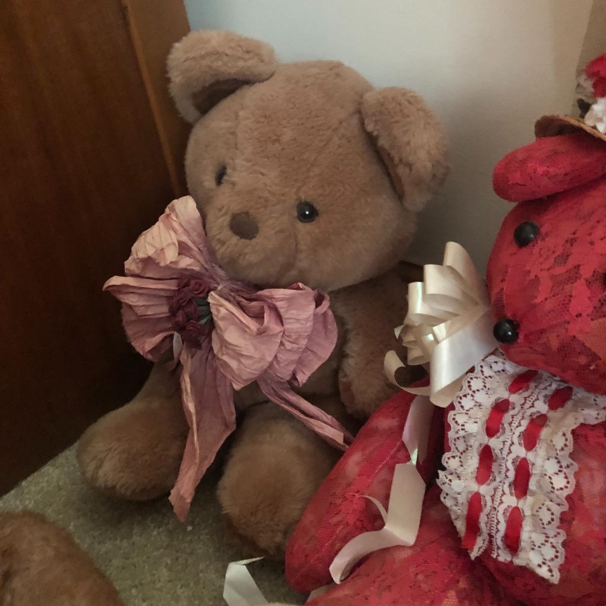 This lot includes seven wood chairs, two handmade horse dolls, two embroidered pillows, two books on teddy bears and eighteen teddy bears. The unique horse dolls are approximately 25” tall; note the metal guns in the male horse’s holster! Local pick up only.