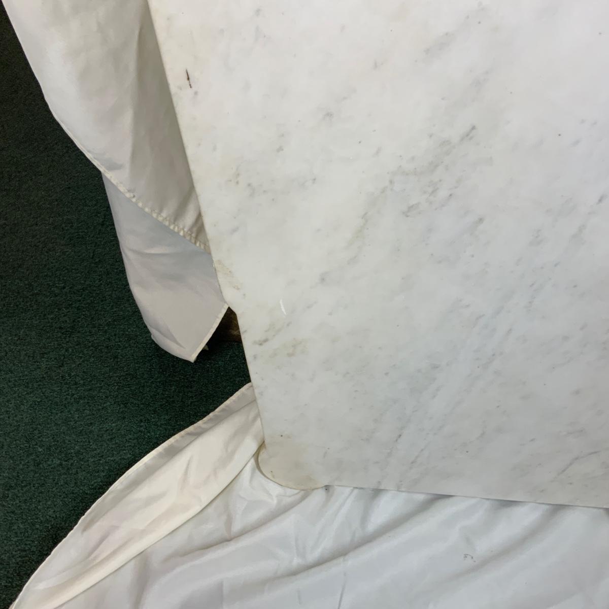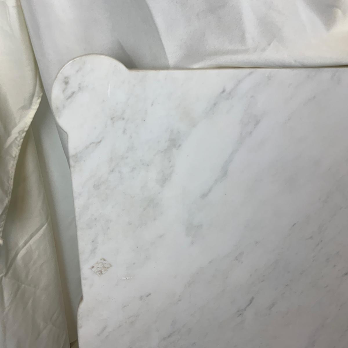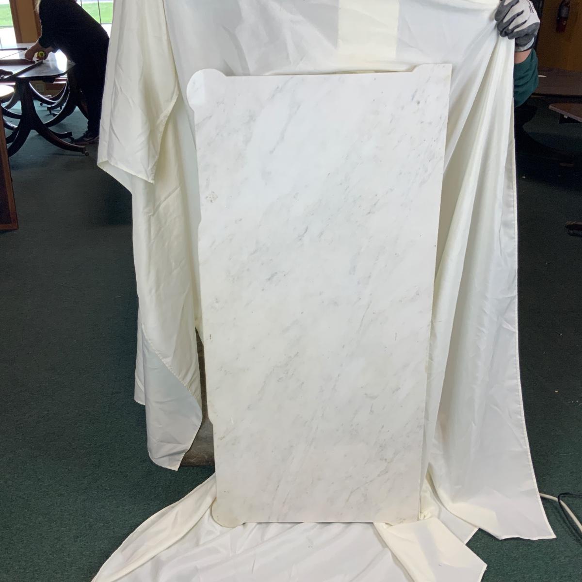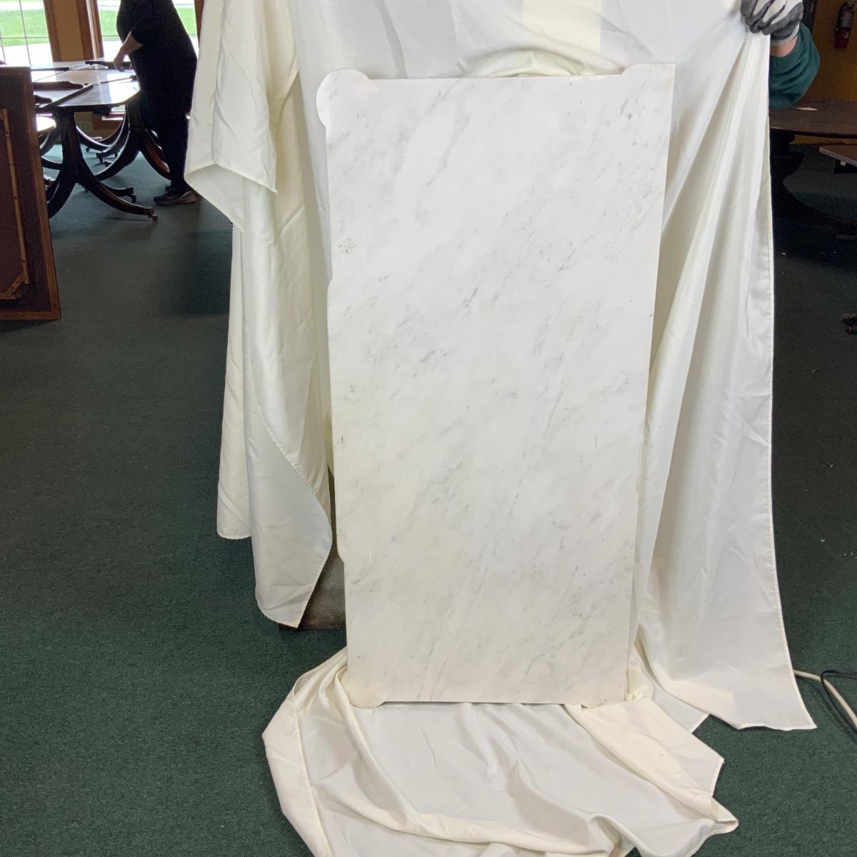 Large White Marble with cut corners. //::\\ Please see photos for details and condition. No attempt has been made to hide any imperfections. All items listed in this auction are warehouse items, and need to be cleaned. A majority of the items need restoration as well. All items are sold AS IS and WITHOUT GUARANTEE. If you are uncertain about an item, DO NOT BID. Due to the nature of this online auction in-person inspection is HIGHLY recommended. All Sales are FINAL. Pick Up Times are FIRM. Please confirm with your own schedule that you can pick up in the scheduled times listed in the Terms and Conditions. Any questions please message the auctioneer. DO NOT Contact The Harp Gallery.