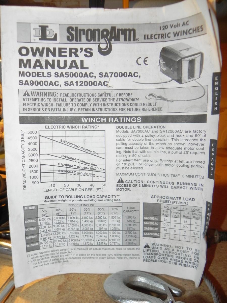 LOT 277 LIKE NEW STRONG ARM ELECTRIC WINCH