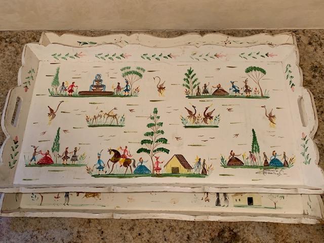 LOT 277 Pair Wood Hand Painted Serving Trays