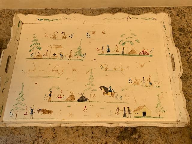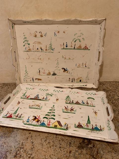 2 Hand Painted Wooded serving trays, apprx 21 x 12 & 20 x 15.