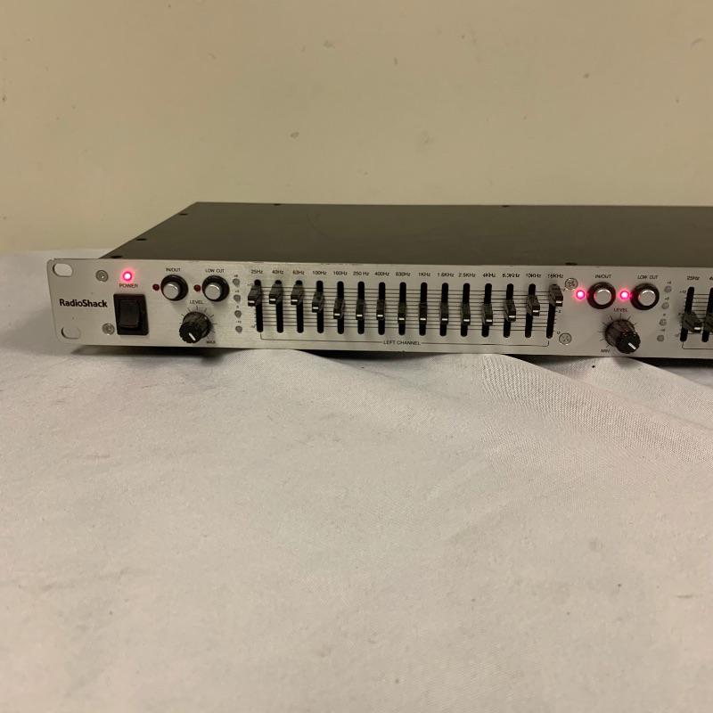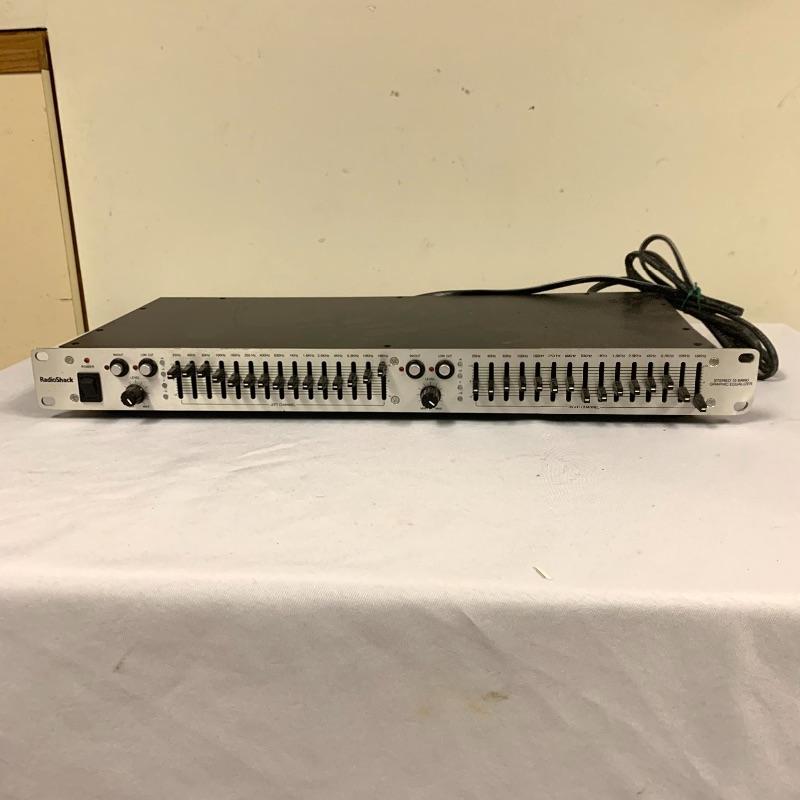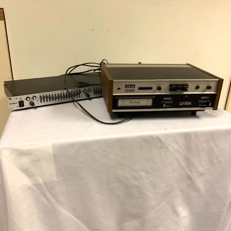 This lot includes a RadioShack Stereo 15 Band Graphic Equalizer & an Akai 8 Track Stereo CR-80D Cartridge Recorder. Both light up and power on when plugged in.