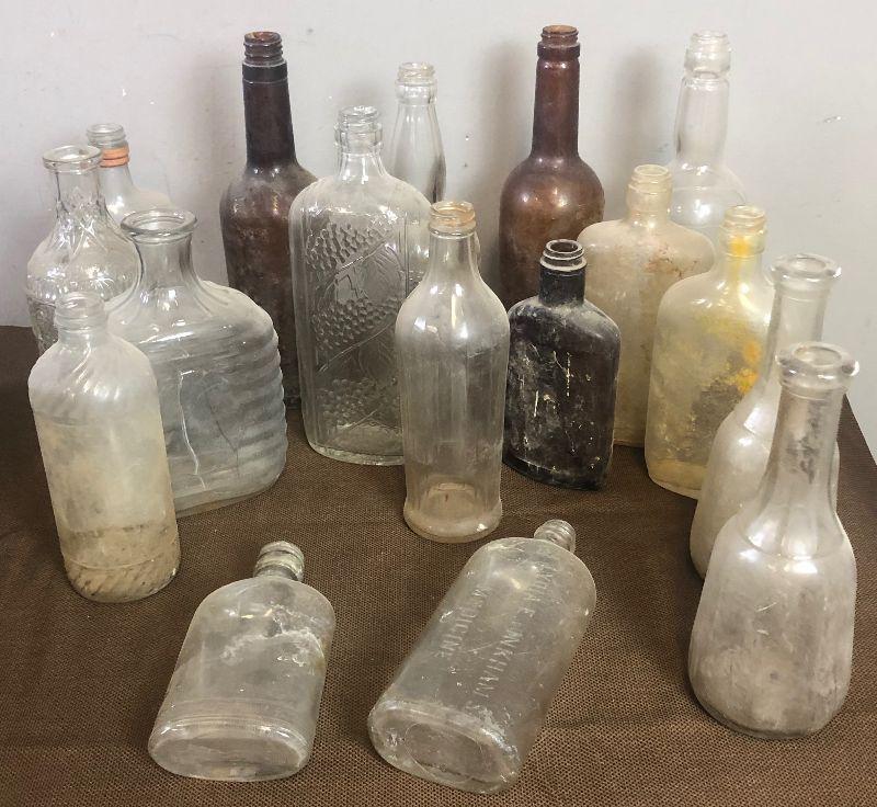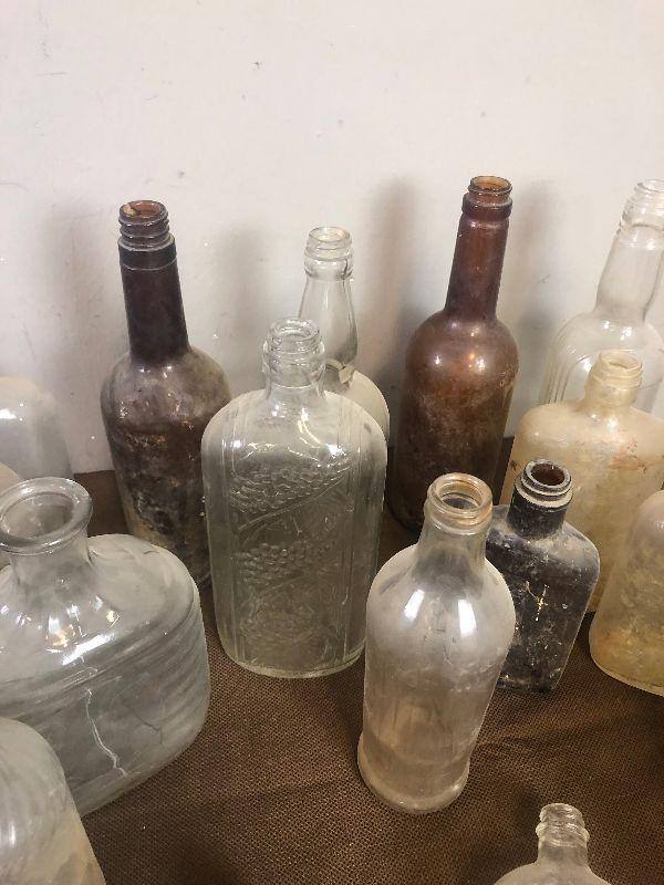Dirty Used Dump Mine pile of Whiskey and wine bottles - old