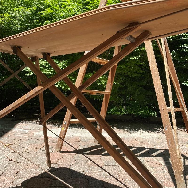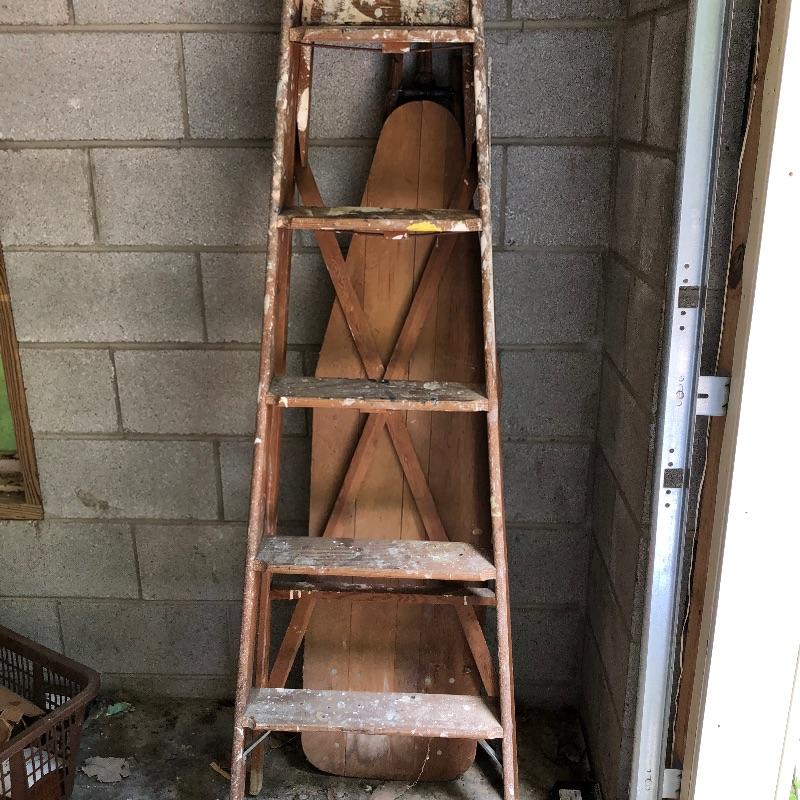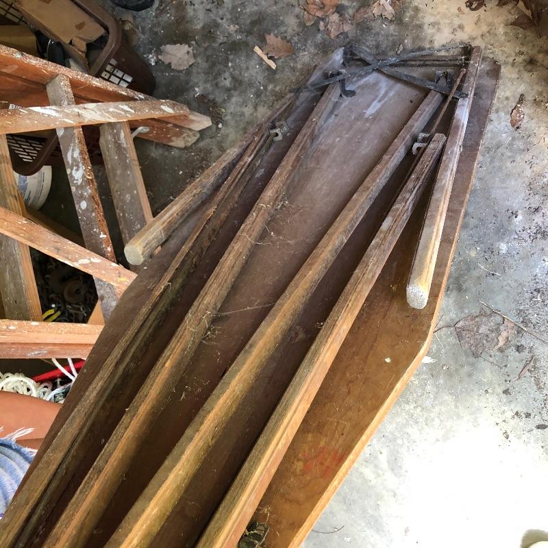 Two great pieces for rustic decor or to be used as intended. This lot includes a rare wooden ironing board that is super easy to set up. There is also a wooden ladder. The ladder measures 6 feet tall. The ironing Is a fun unique piece that measures 59” tall. Local pick up only.