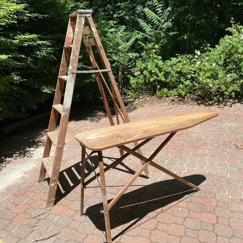 Lot 278 - Vintage Wood Ironing Board and Ladder