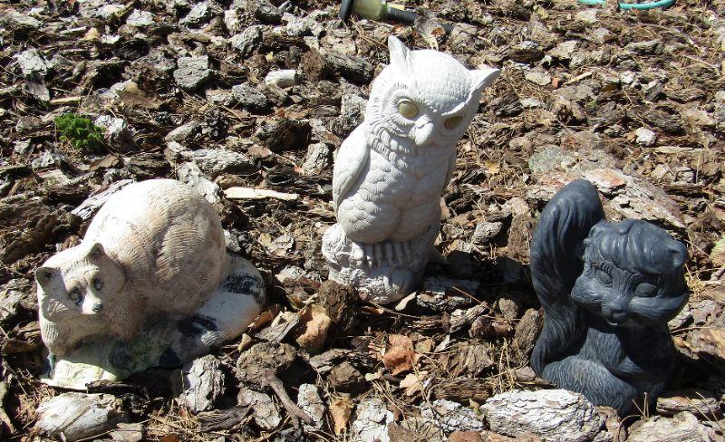 SMALLER CONCRETE RACOON, OWL & CHIPMUNK