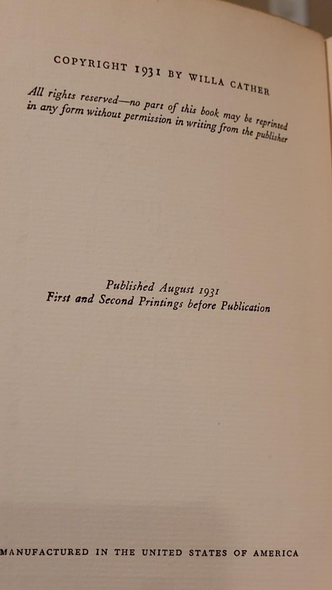 Lot 278: (3) Willa Cather Books "Troll Garden", "Shadows on the Rock" and "Obsure Destinies"