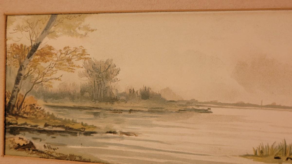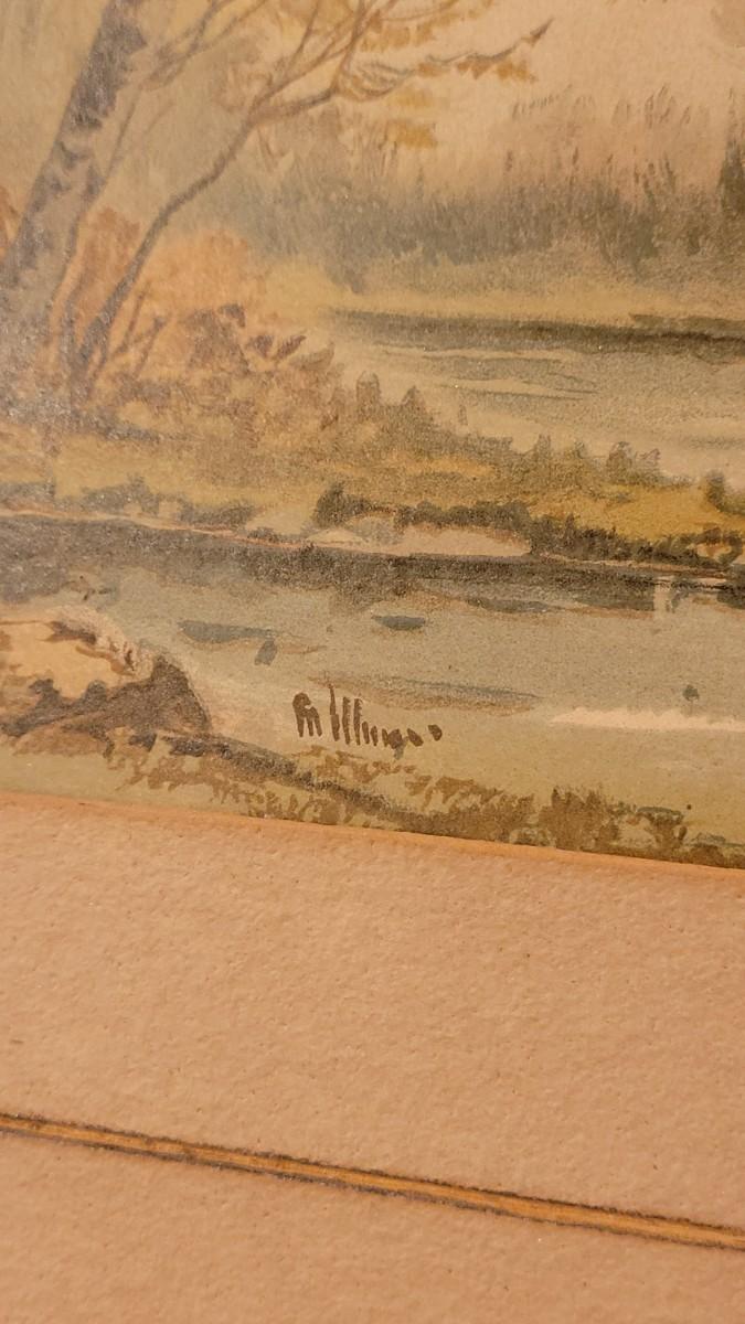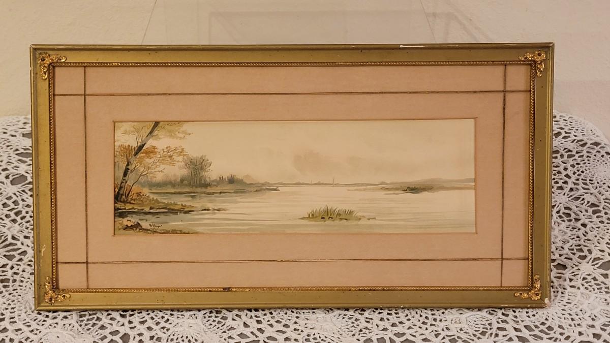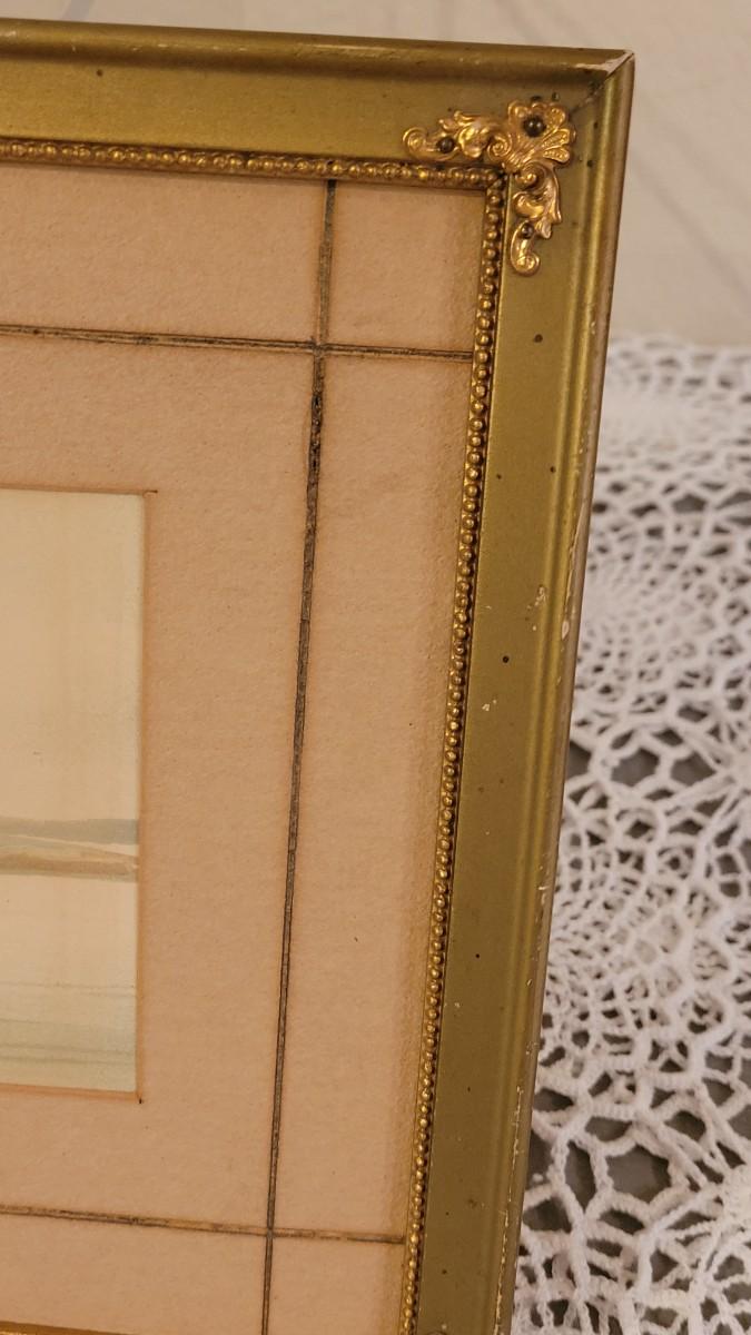 Lot 278: Antique Original Watercolor Artwork in Green Antique Frame- Missing Glass and Back of Frame