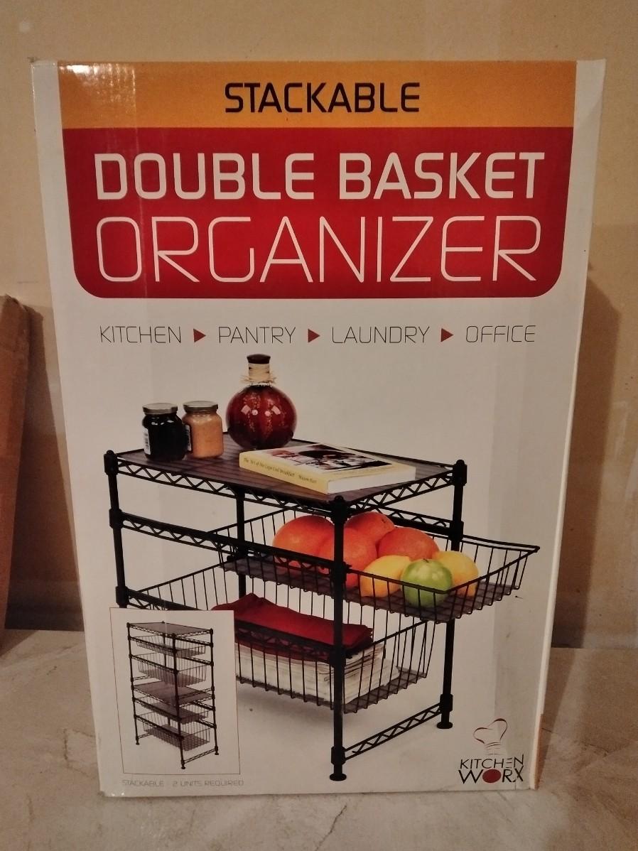 BRAND NEW DOUBLE BASKET ORGANIZER AND YARD BAG HOLDER