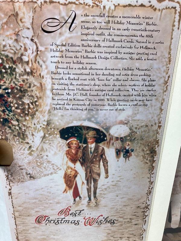 “Holiday Memories” Barbie has been opened. “Holiday Homecoming” Barbie has never been opened and comes with matching ornament