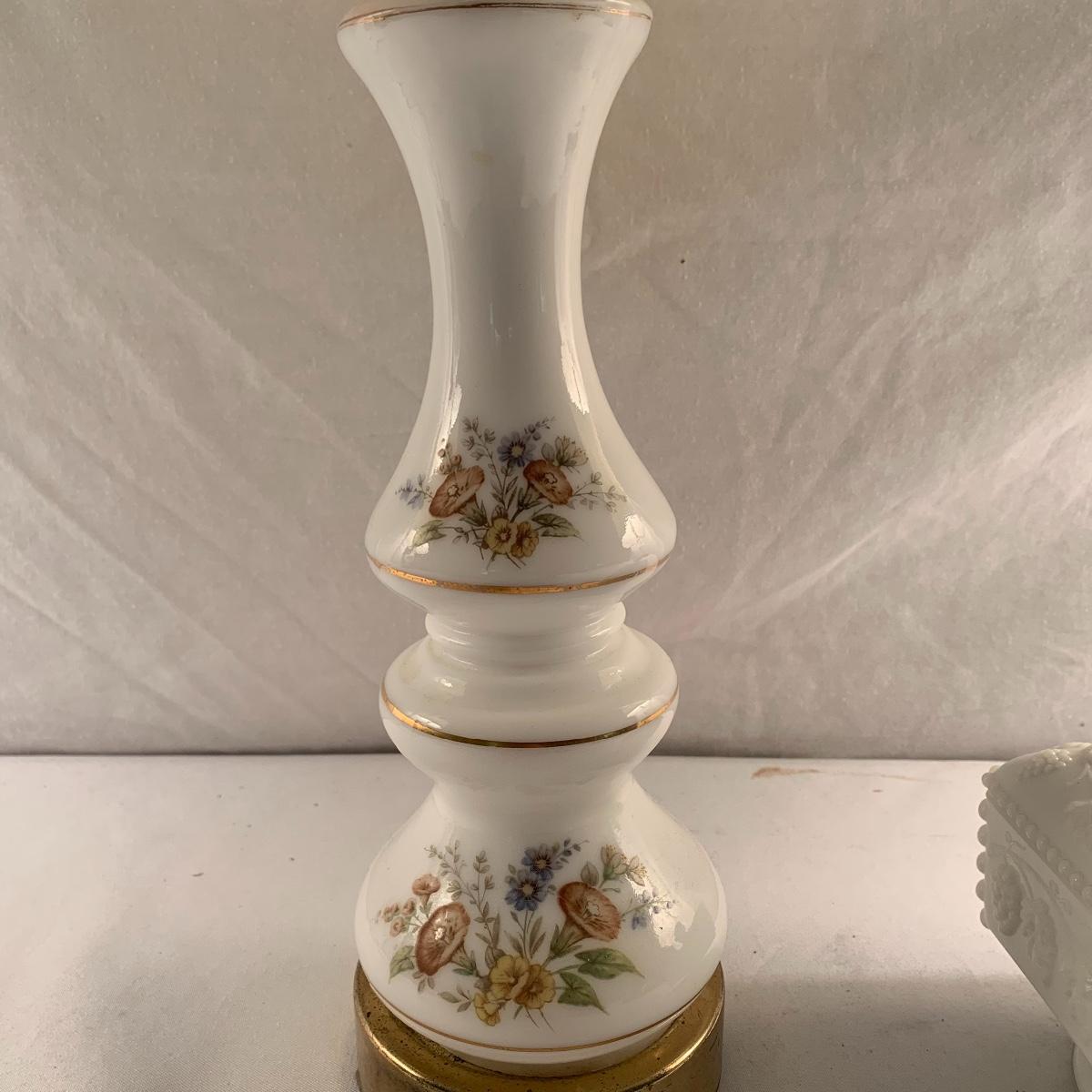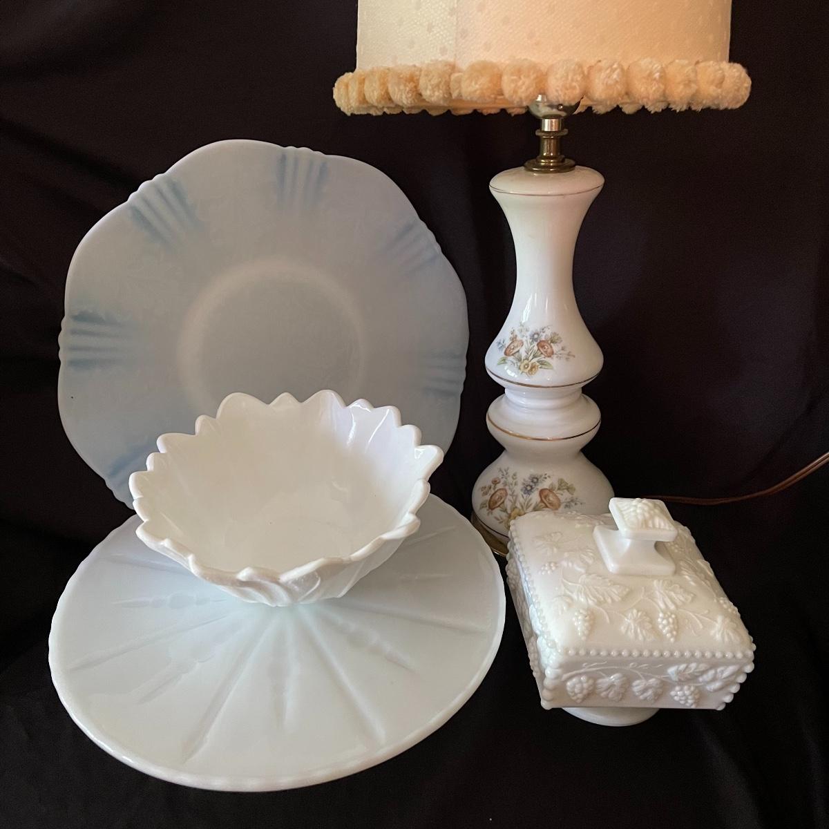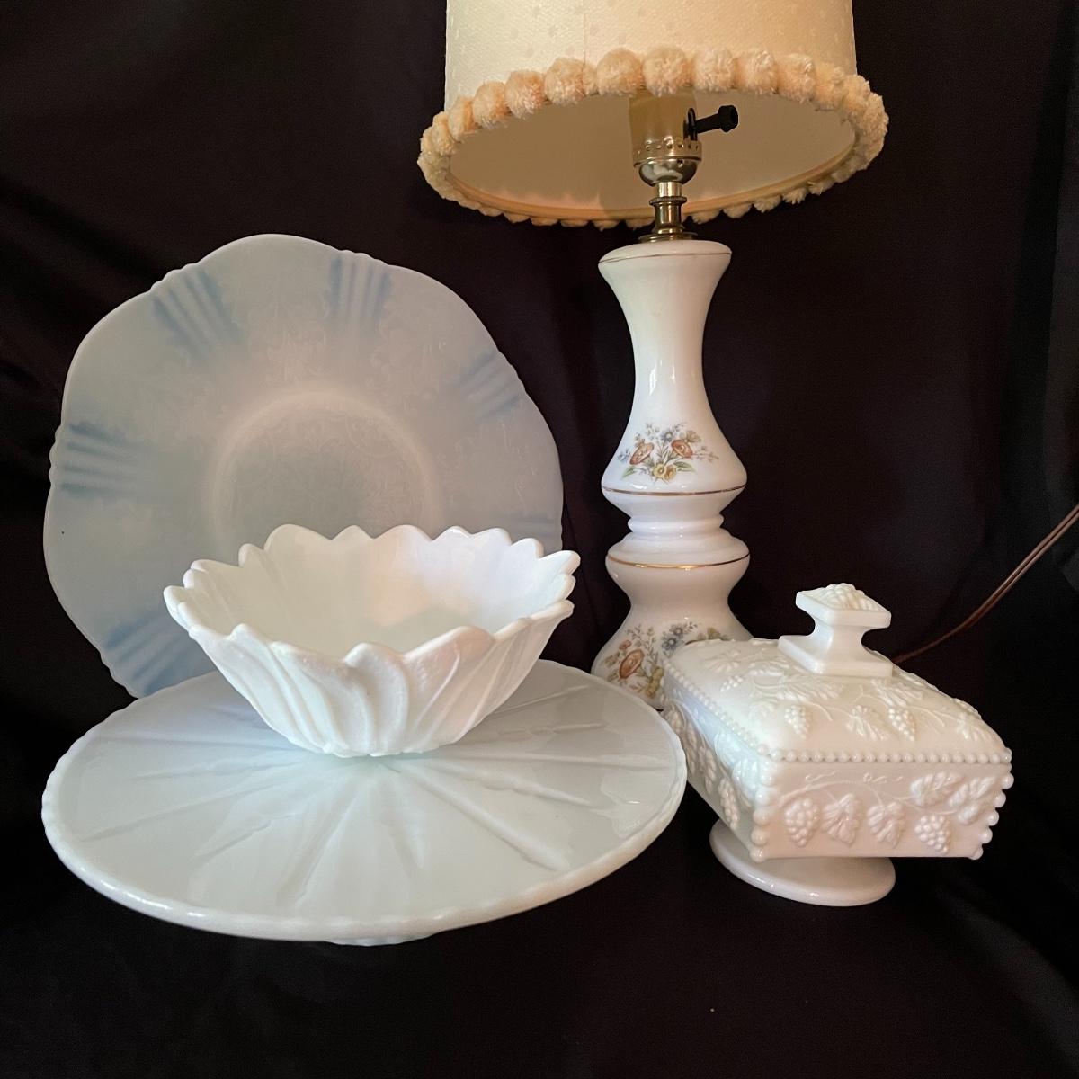 Lot 278 - Milk Glass Assortment & Floral Lamp