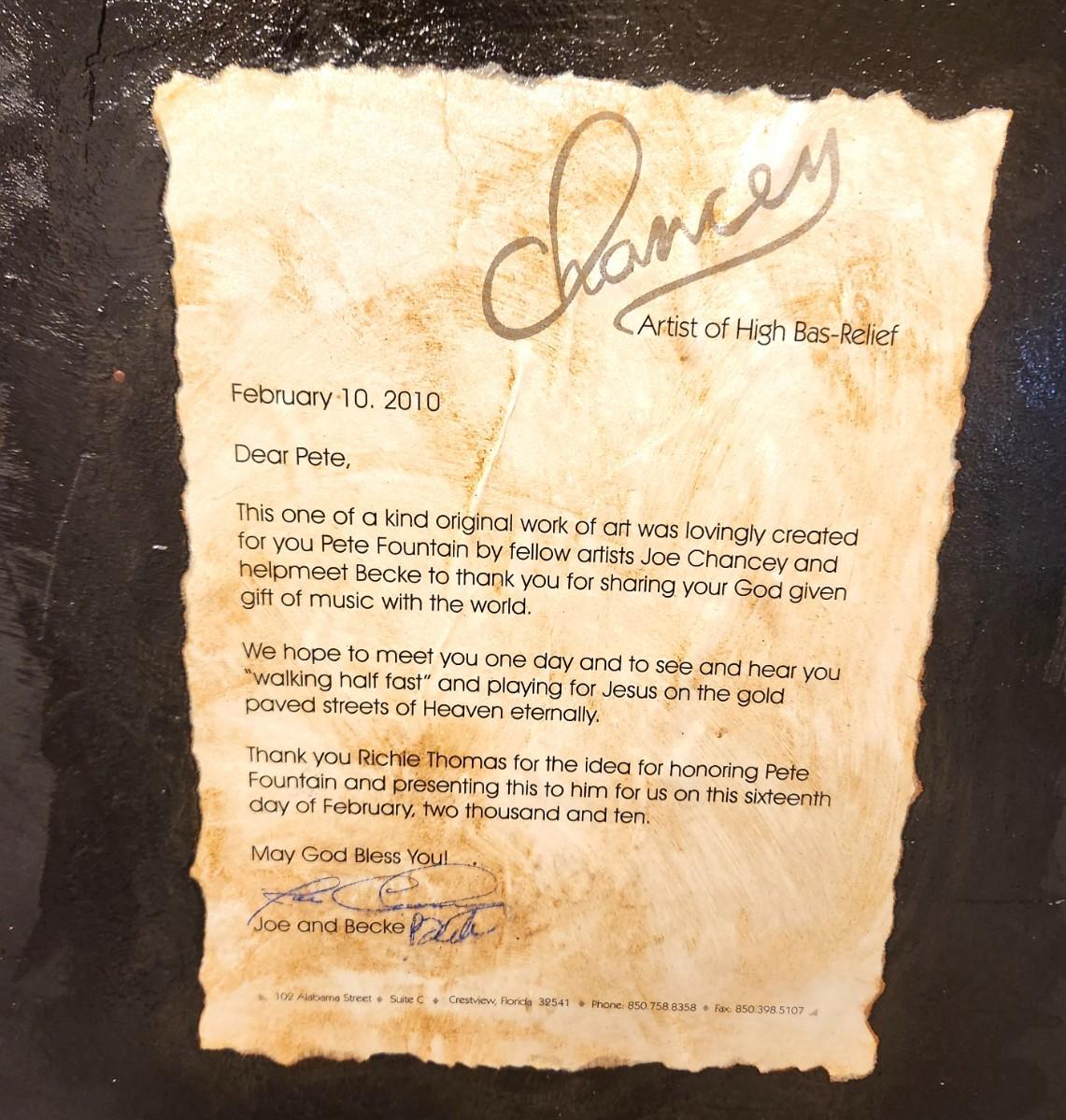 Original Artwork (colored bas-relief) present to Pet on 16 Feb 2010 by High Bas Relief artist Joe Chancey. 35" across. A one of a kind item.