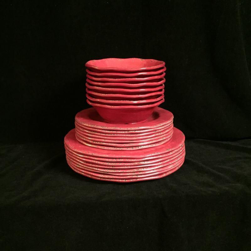 Here's a quick way to stock your kitchen with this Melamine Dish Set From Pier 1 Imports. Lovely red color. In great condition. Local Pickup Only