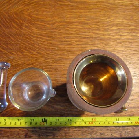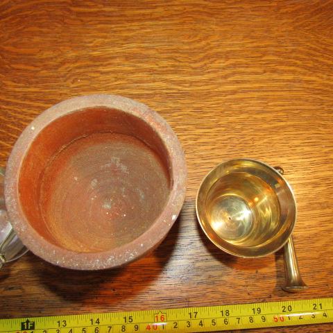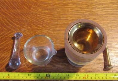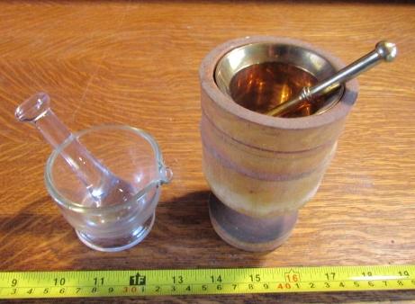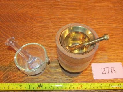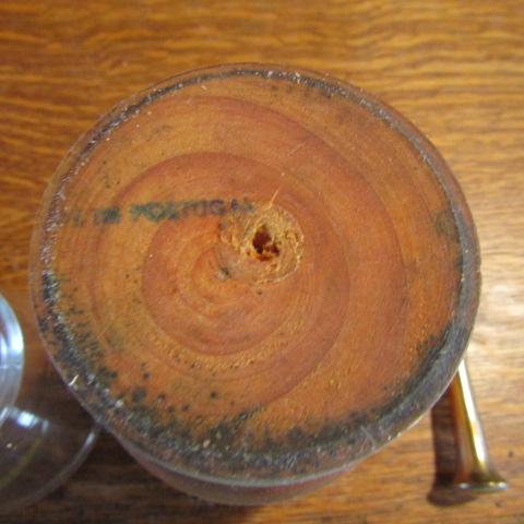 WOODEN MORTAR WITH BRASS CUP INSERT AND BRASS PESTLE