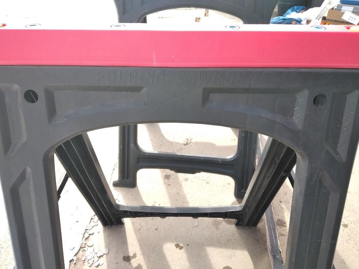 LOT 278 TWO SAW-HORSES & 3 FT. TOOL RACK