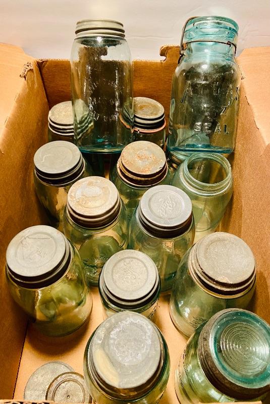 Box lot of vintage Atlas and Whitney mason jars. Please see all pictures for content of the lot, condition of the lot, and measurements if taken. Pictures are the best representation of the items listed and items are untested unless indicated in description. Thank you for looking and have fun bidding!