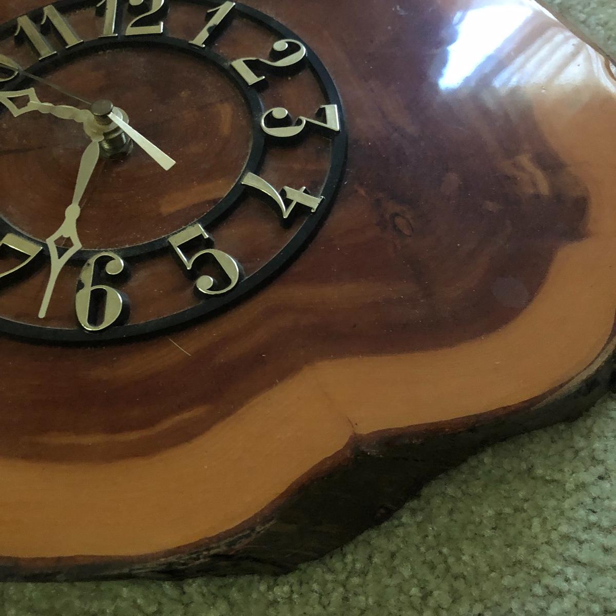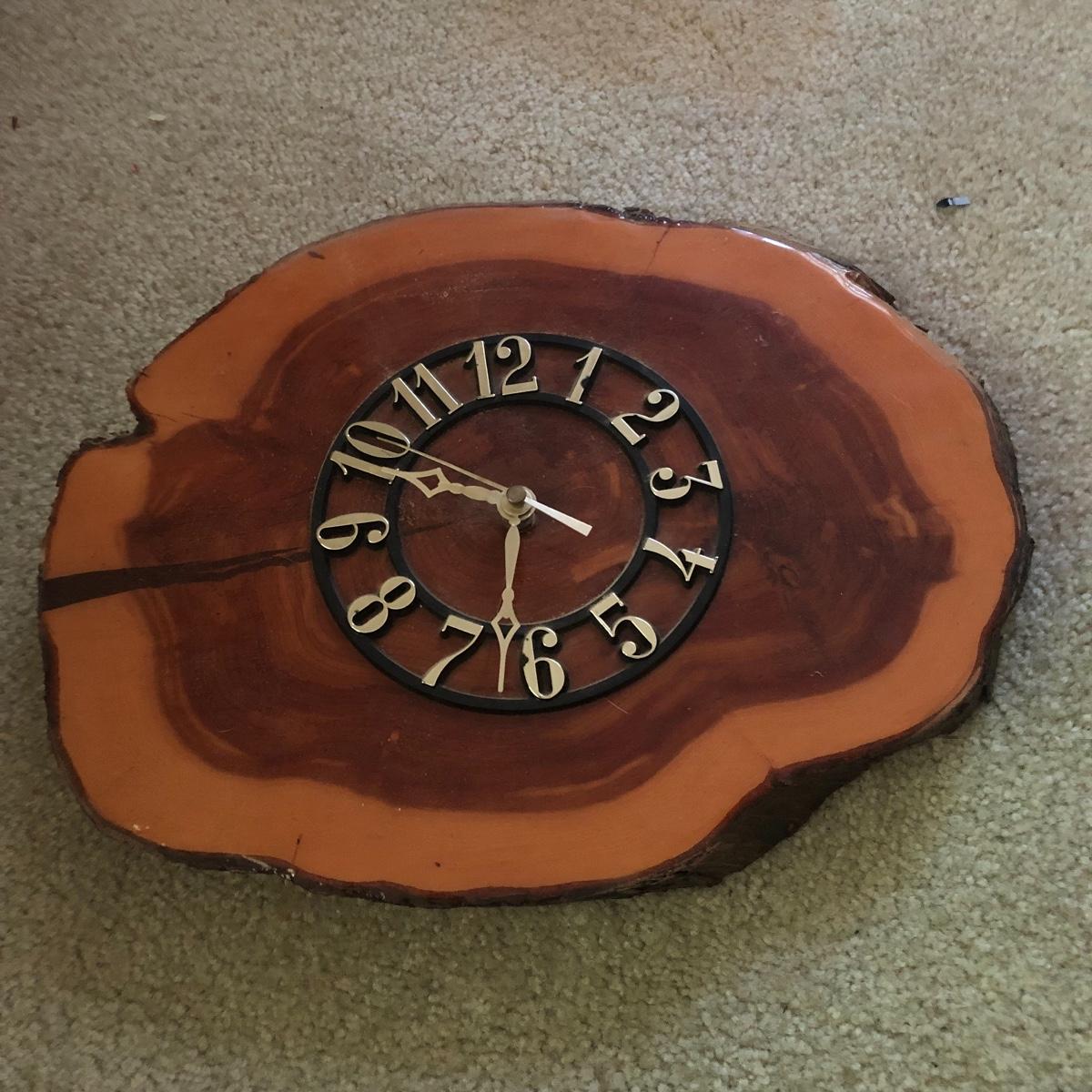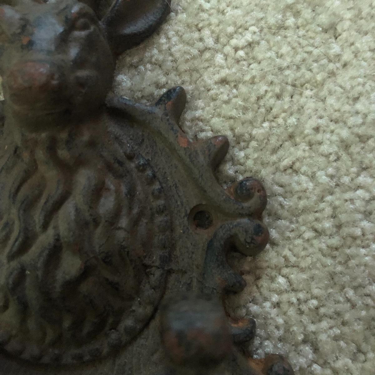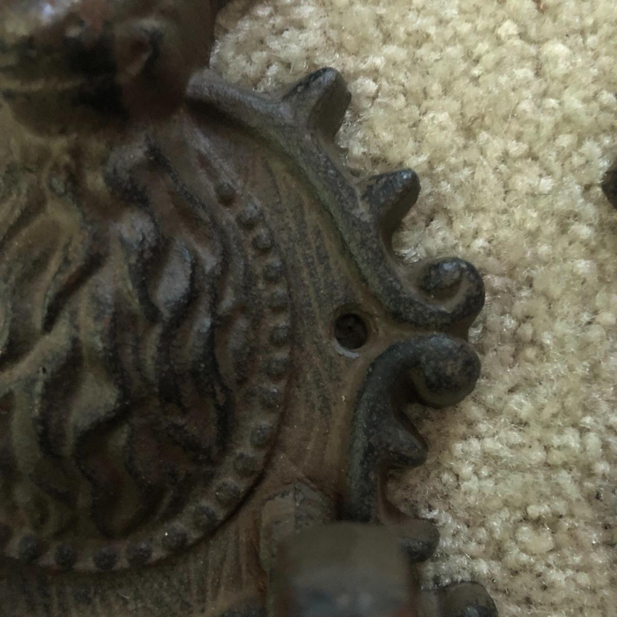 This lot contains two wrought iron elk hangers and a battery operated wall clock. The elk wall hangers measure 5” x 8”. Both of them have holes for hanging on the wall. One has a loose hanger which can be remedied by tightening the screw. The wood. clock measures 14” x 11”. It appears it needs a new battery so was not tested.. Shipping Available.