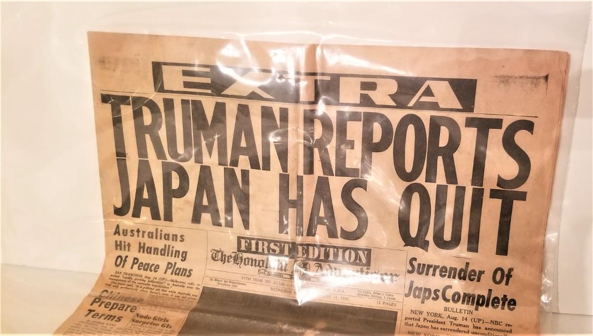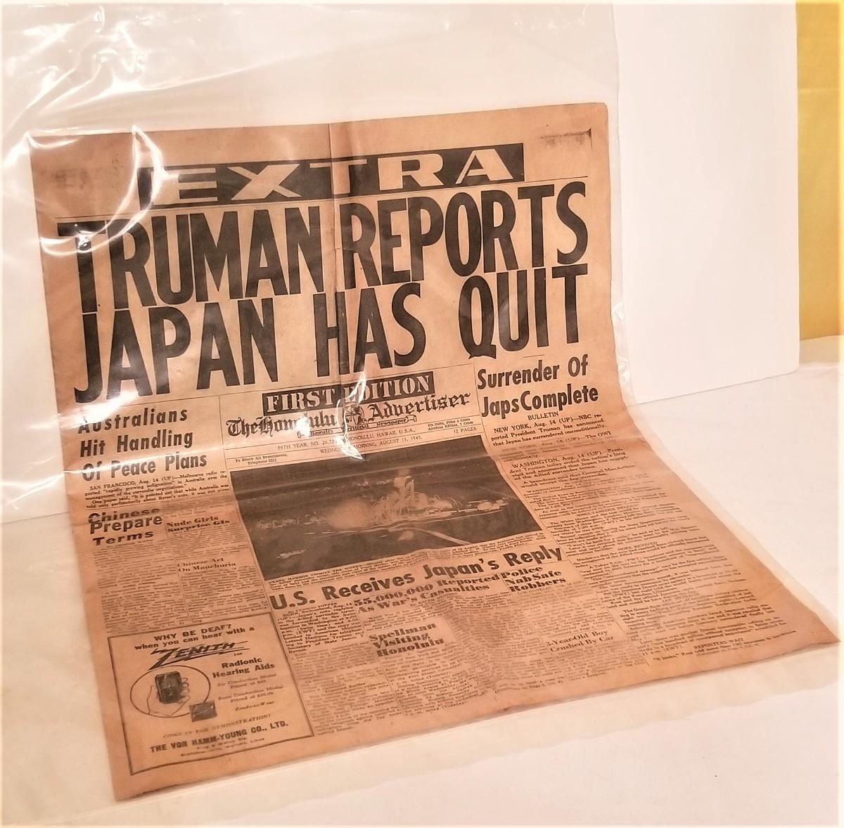 Original Honolulu Advertiser - EXTRA - Truman Report Japan has Quit - 15 Aug 1945. Good WWII content here.