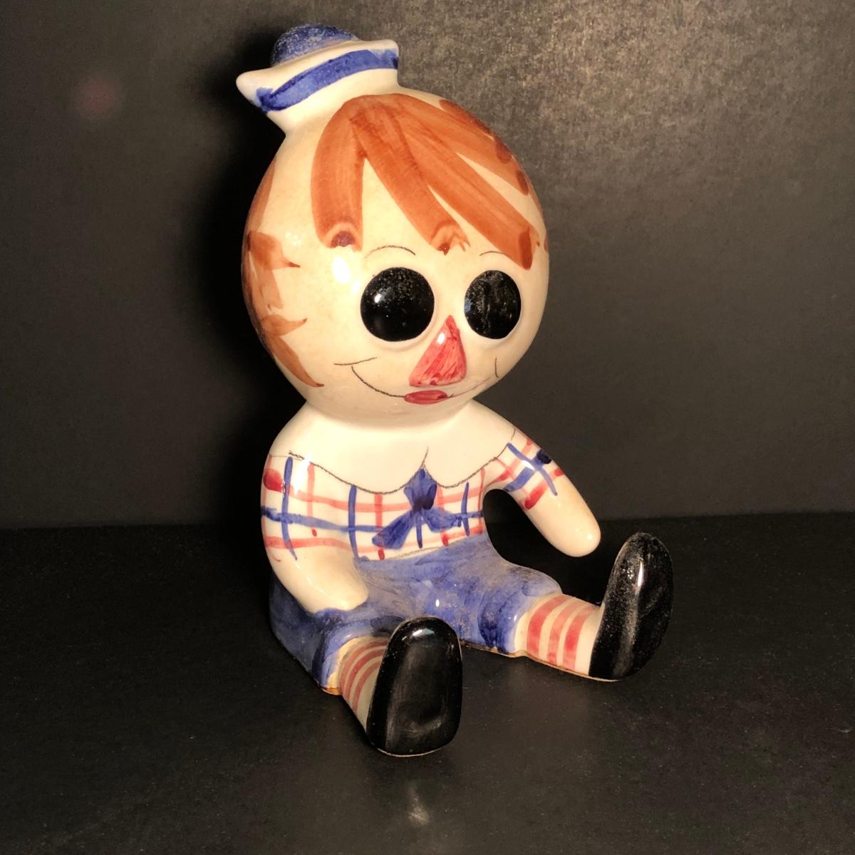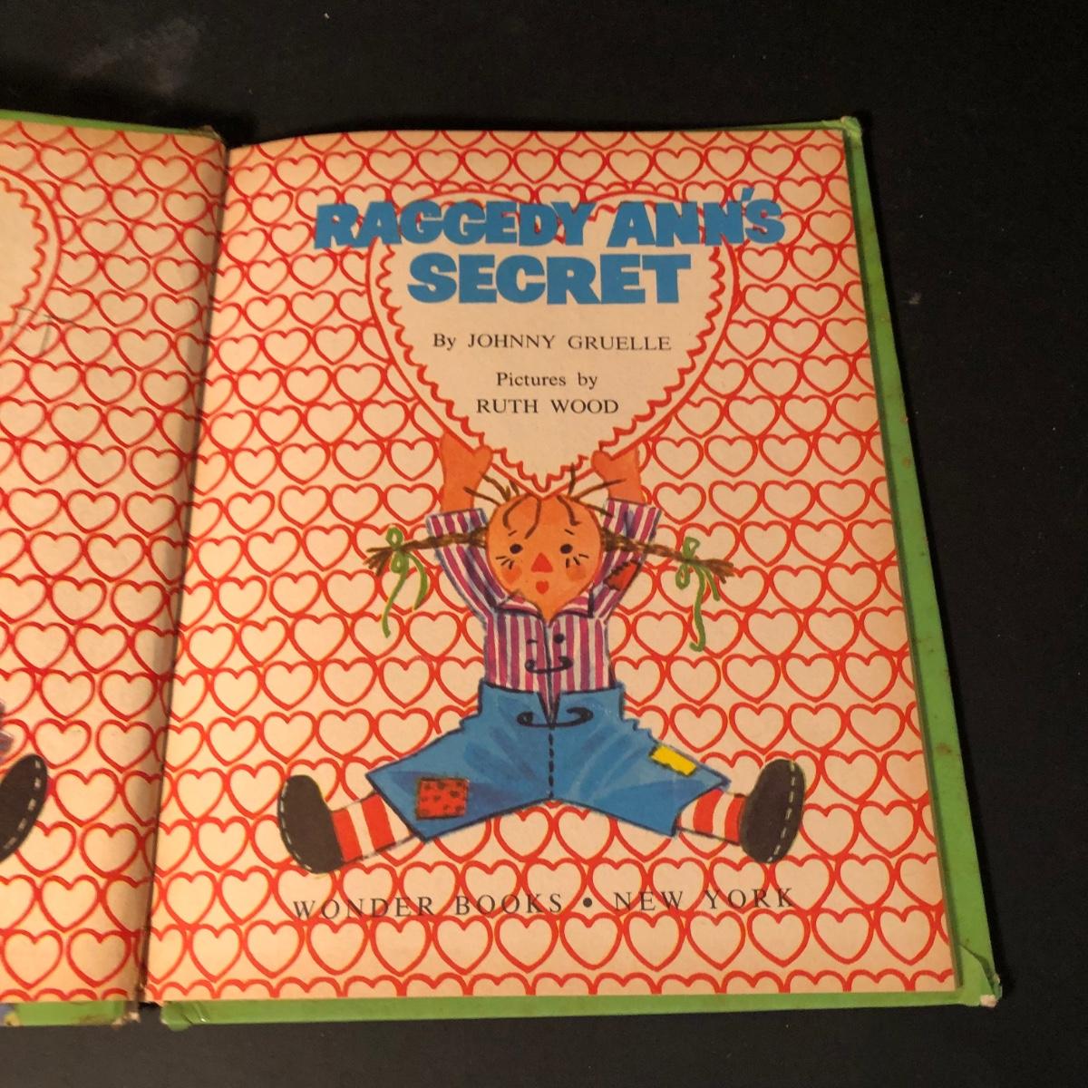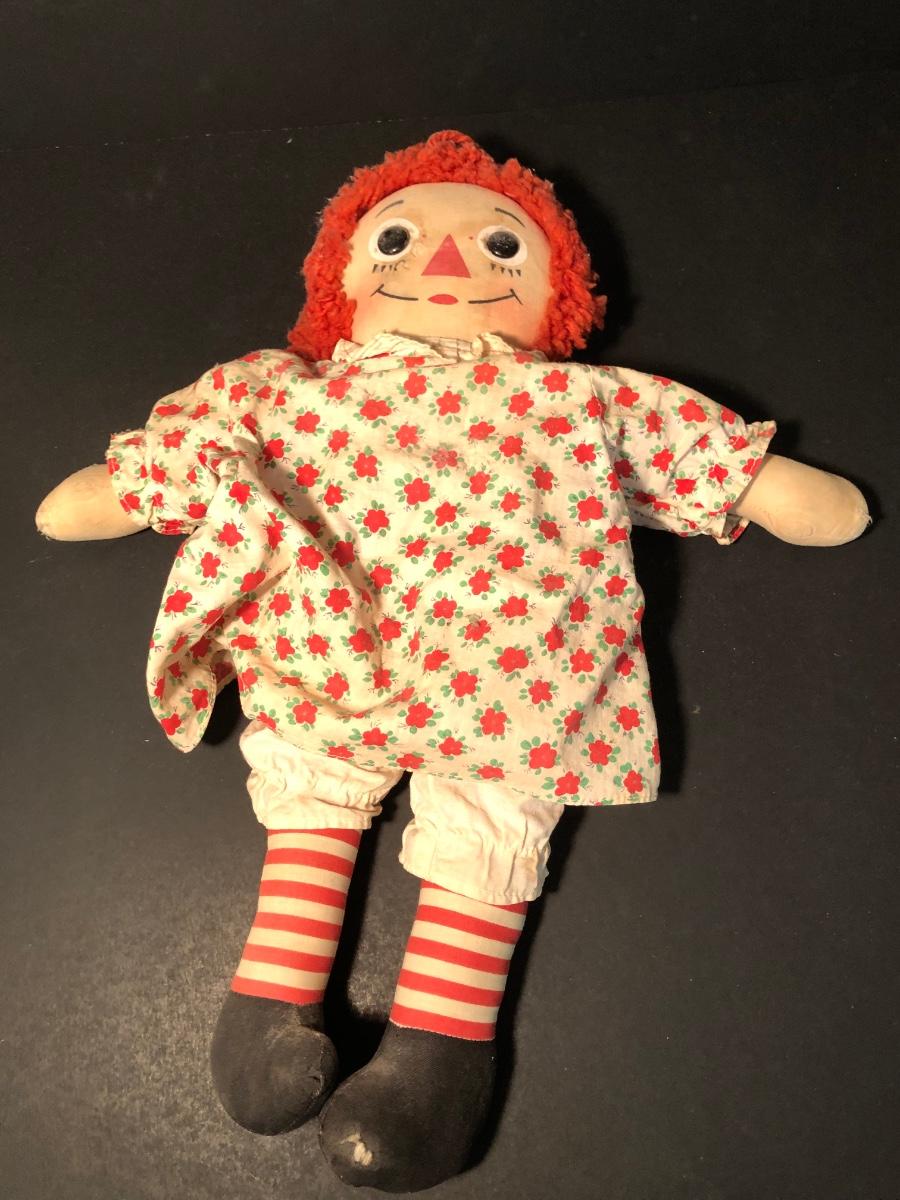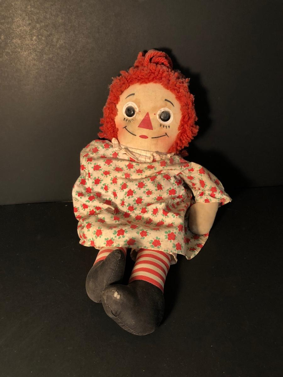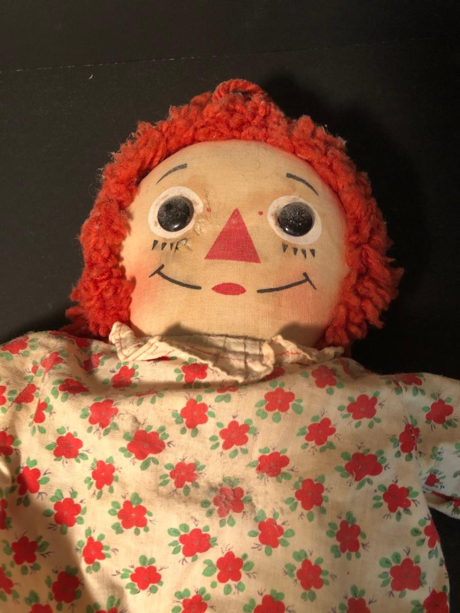 LOT 278F: Vintage Raggedy Ann Doll, Vintage Italian Raggedy Andy Coin Bank & 1959 Raggedy Ann's Secret Book