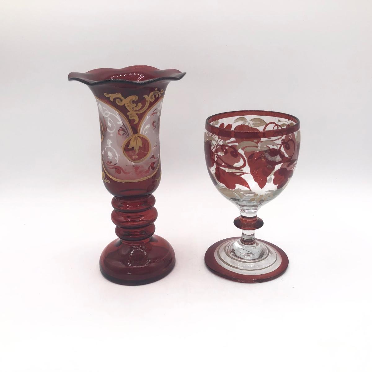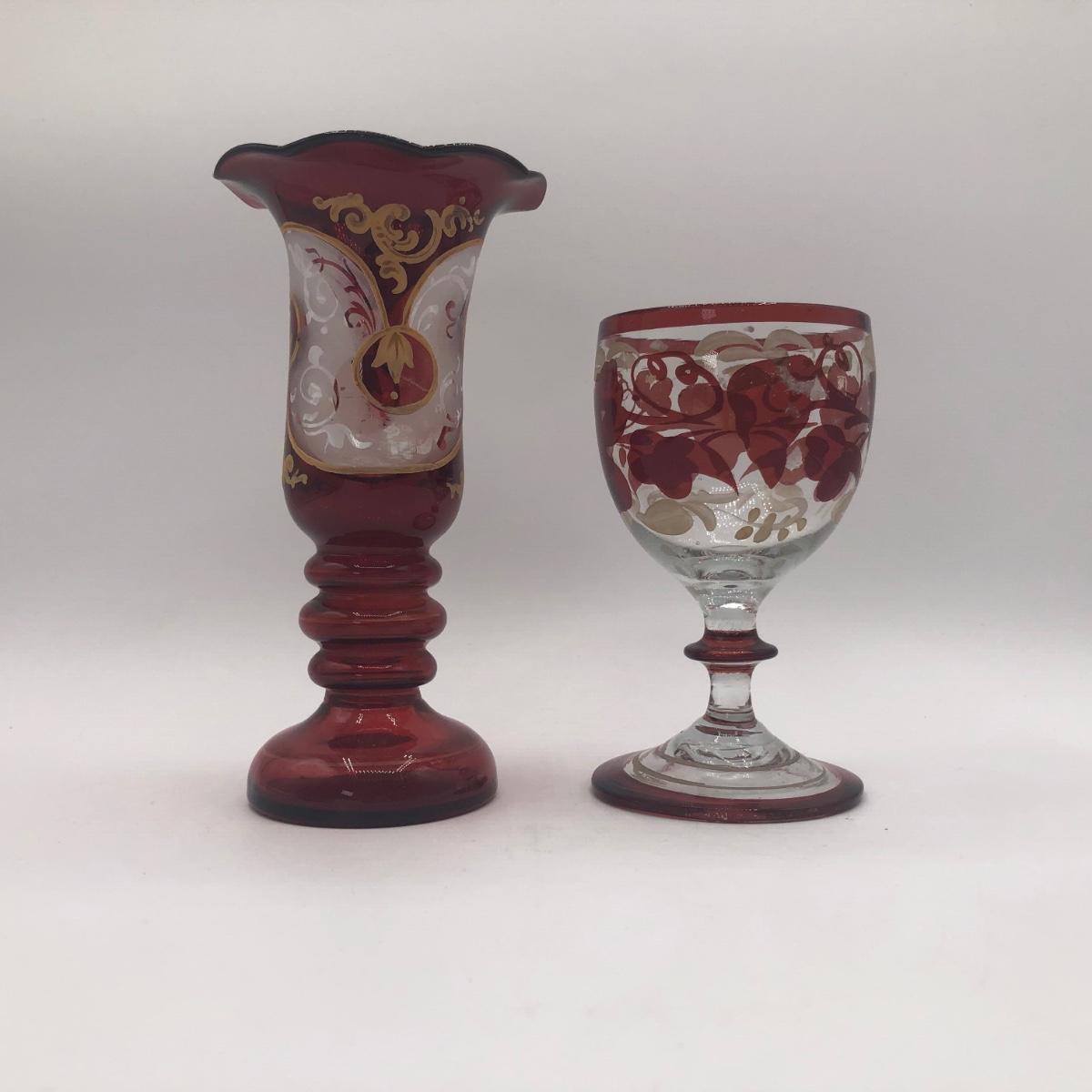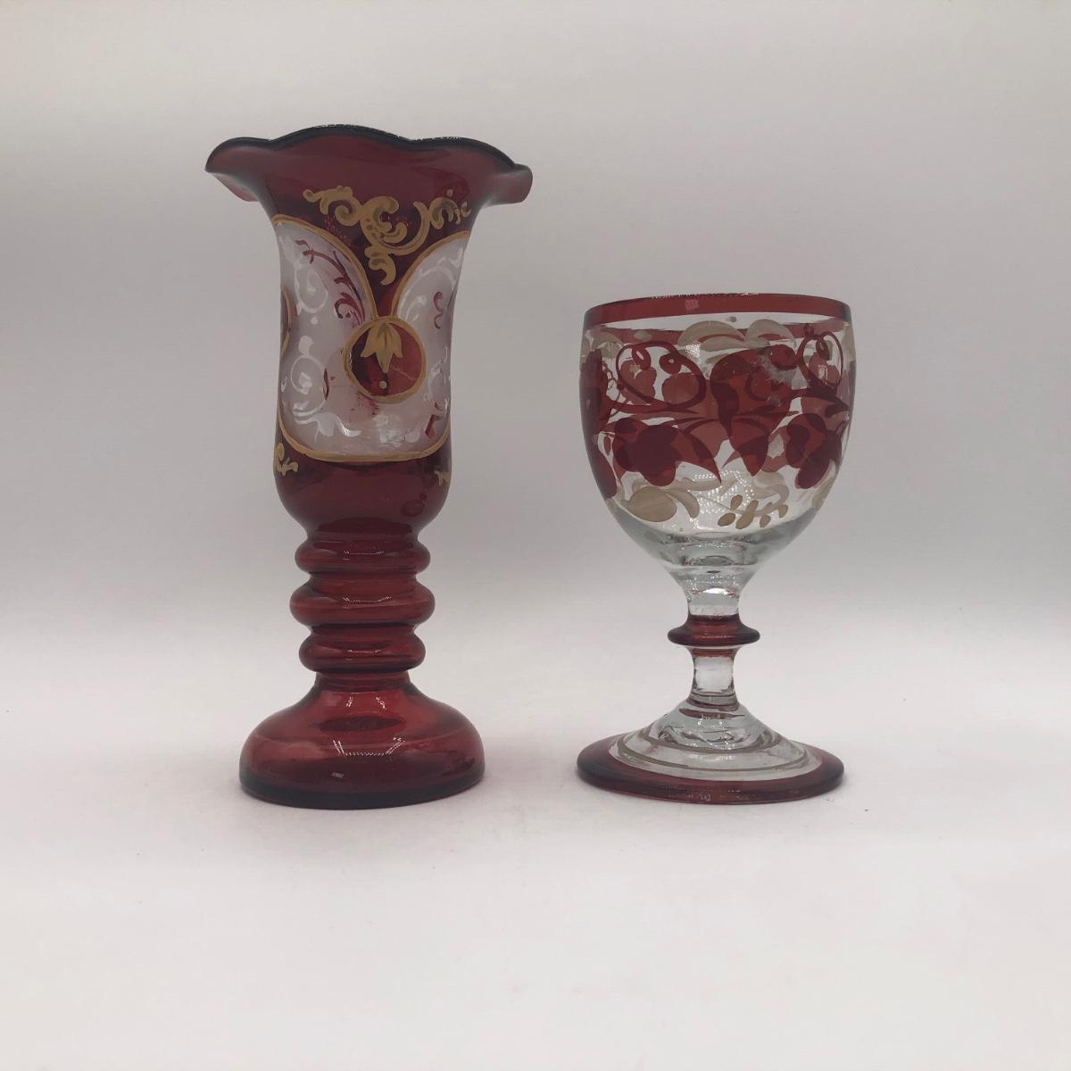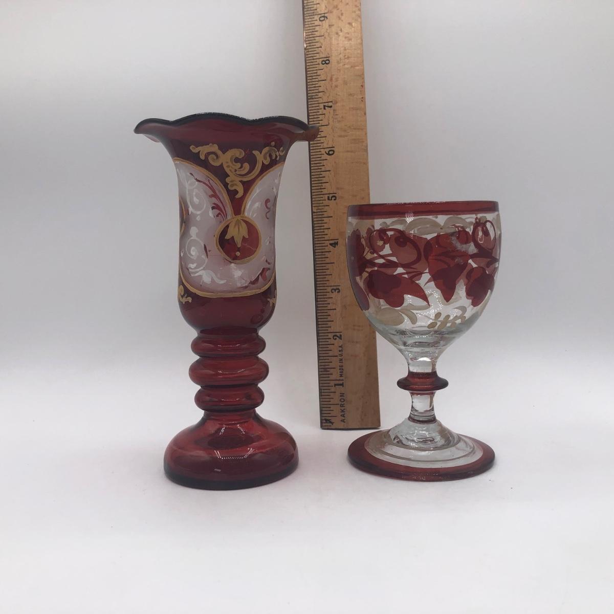 LOT 278F: Antique / Vintage Bohemian Ruby Glass Vase & Goblet
