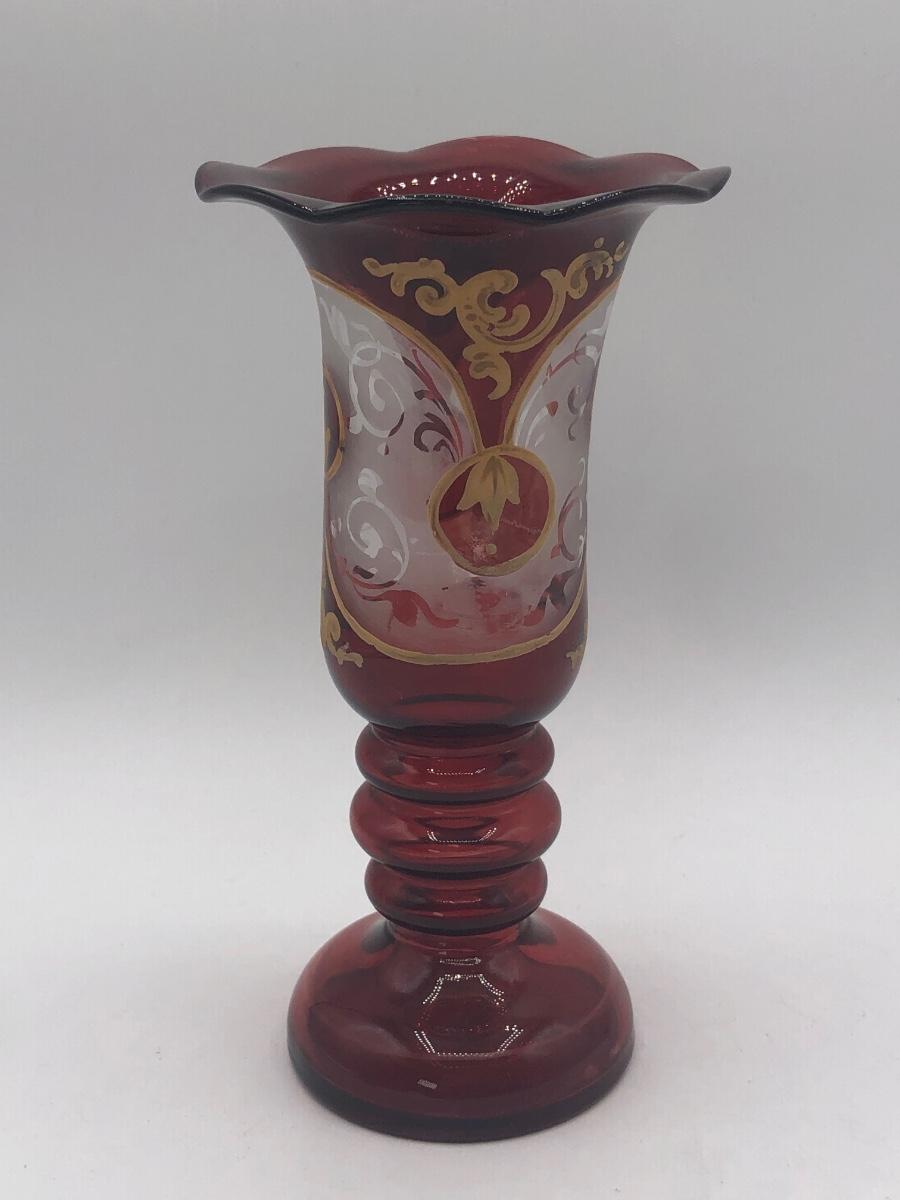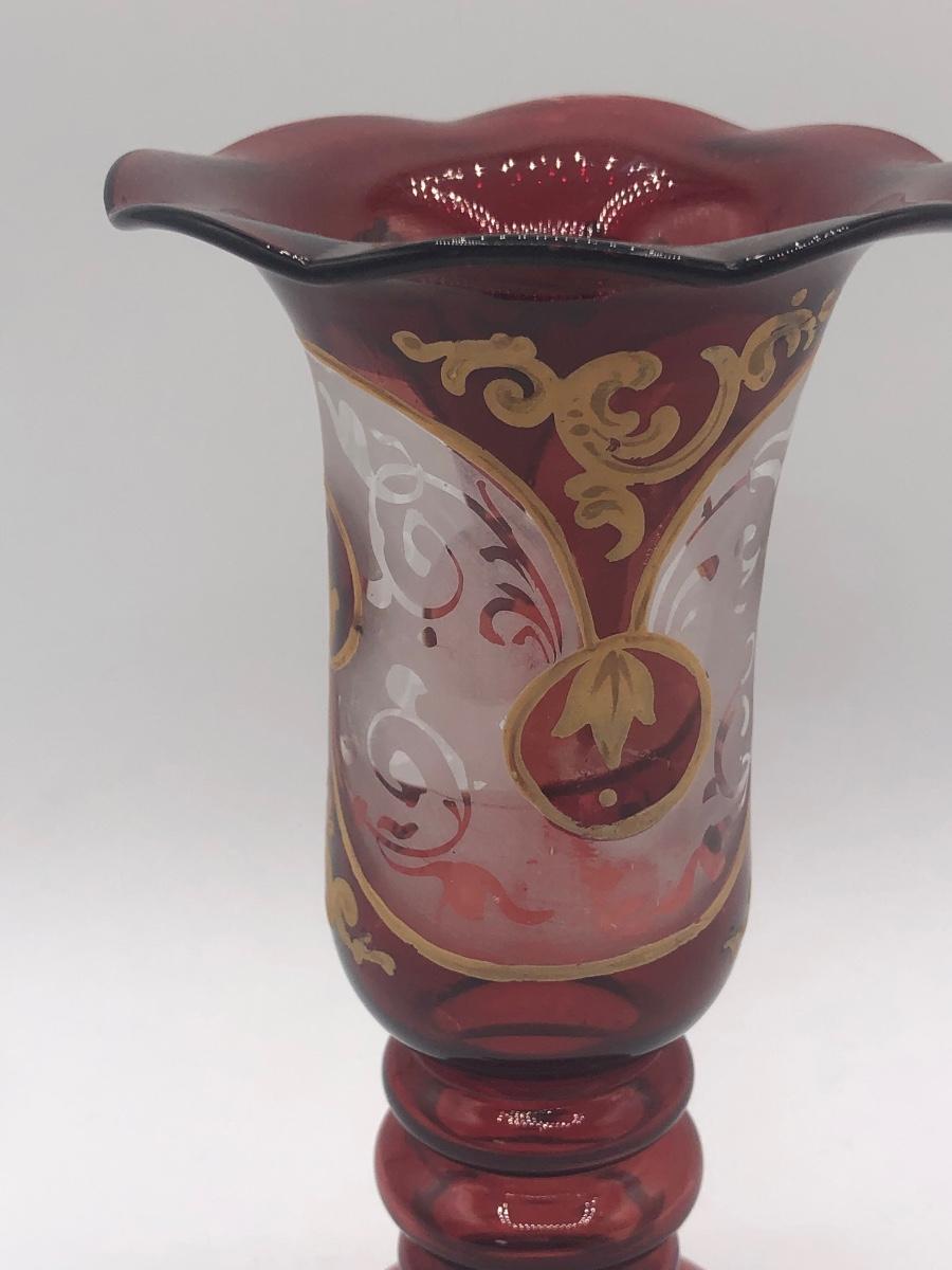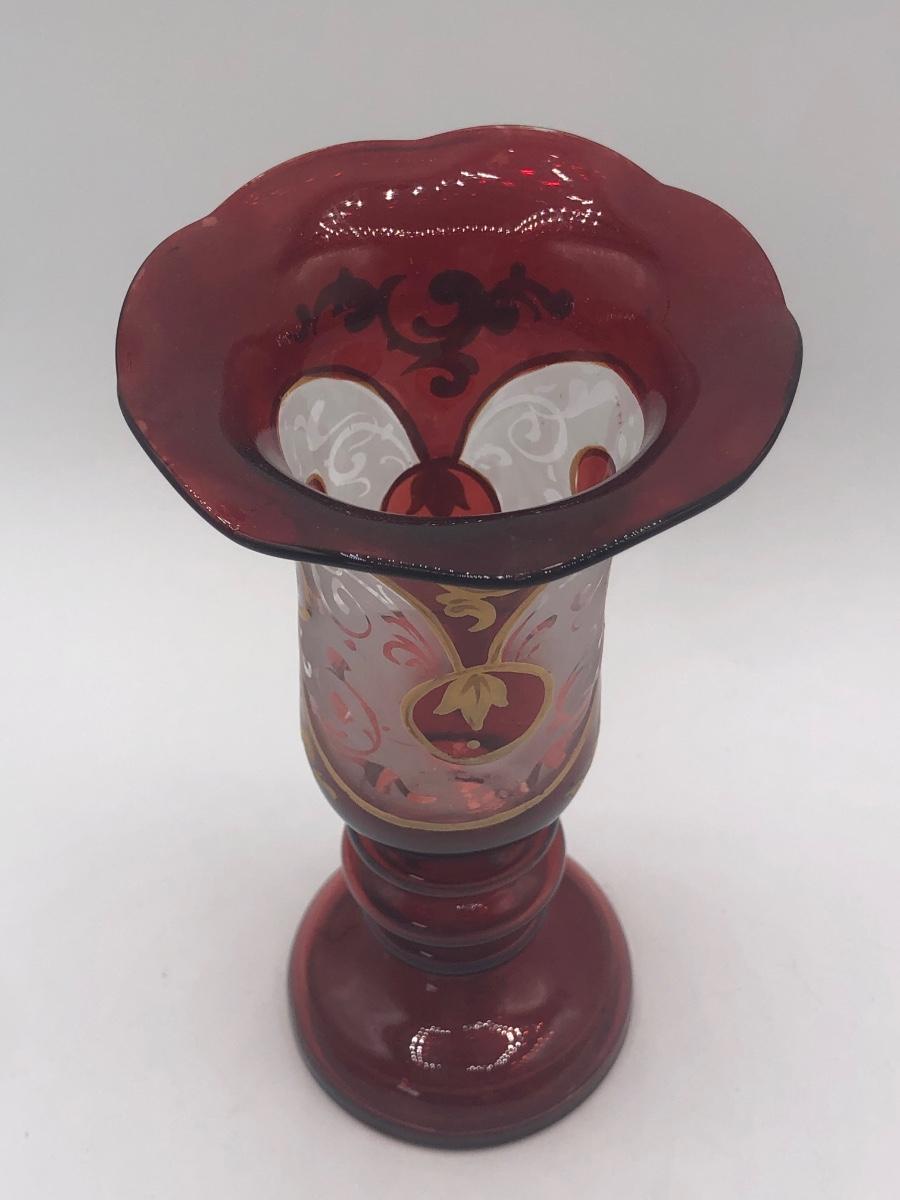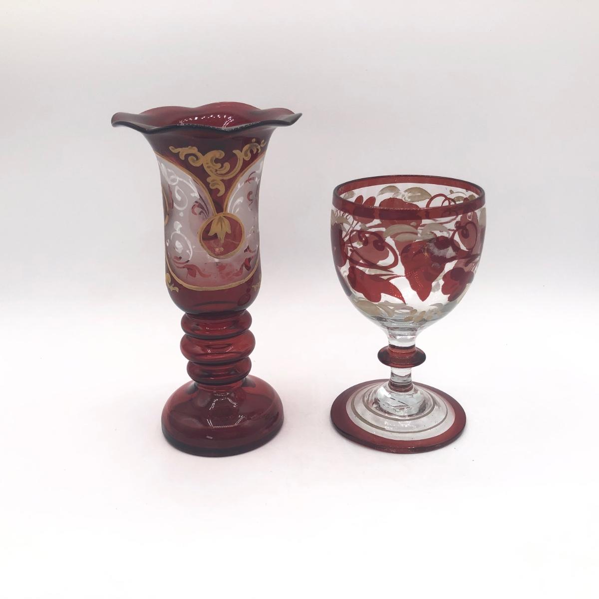 LOT 278F: Antique / Vintage Bohemian Ruby Glass Vase & Goblet