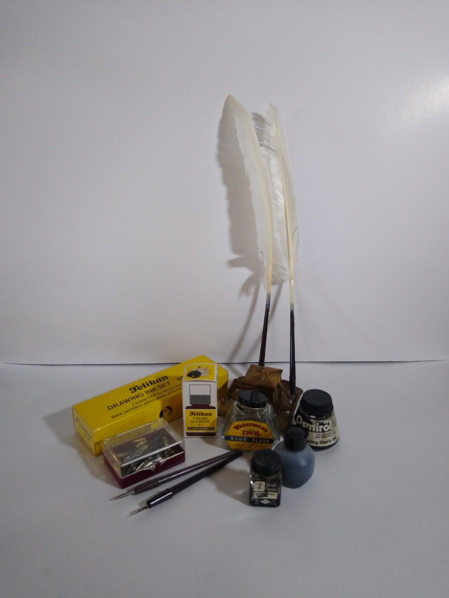 LOT 278L: Vintage Calligraphy Drawing Set w/ Pens, Inkwell, Ink & Nibs