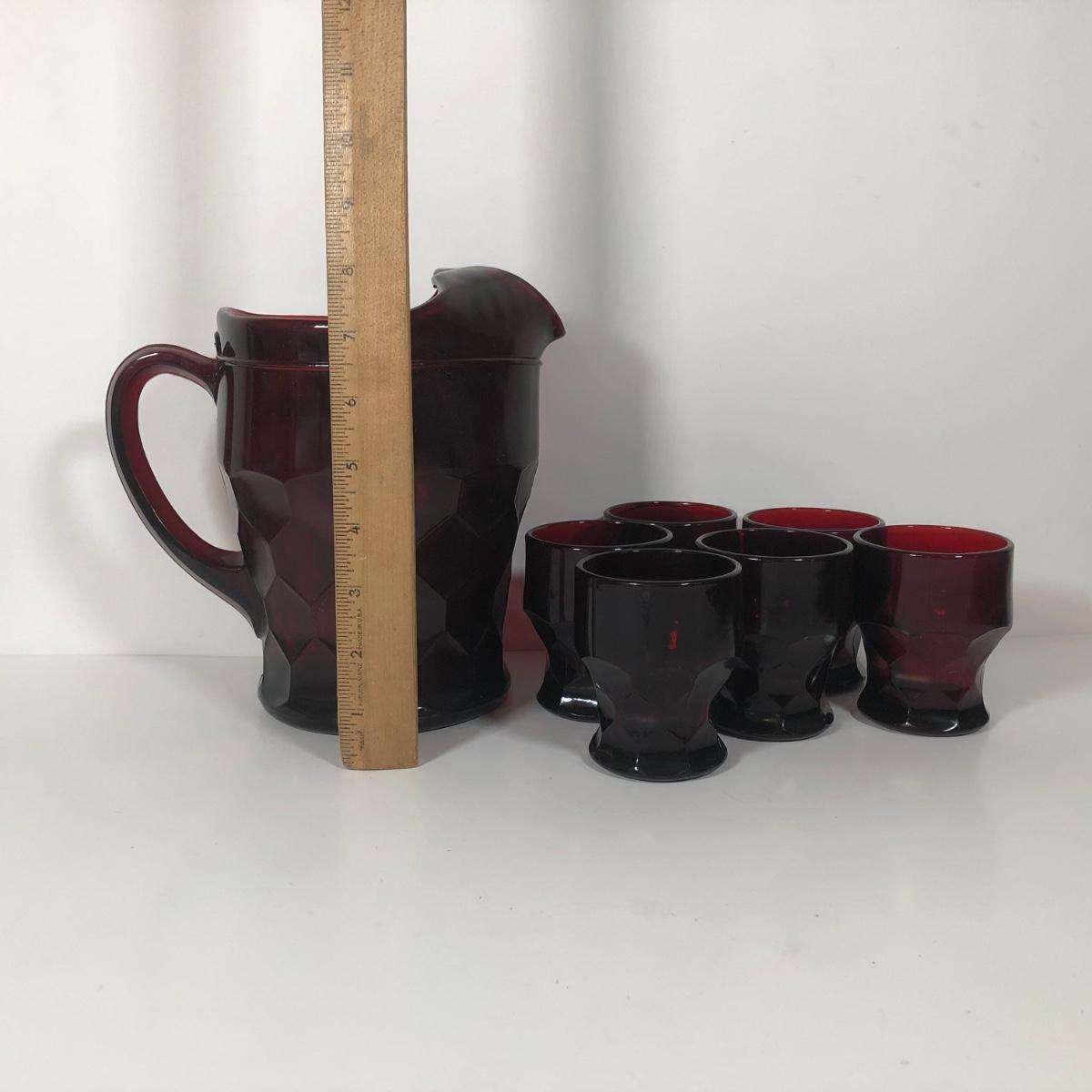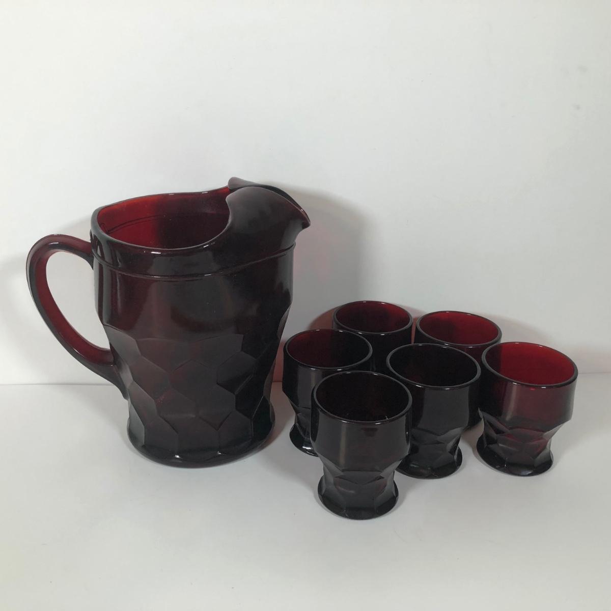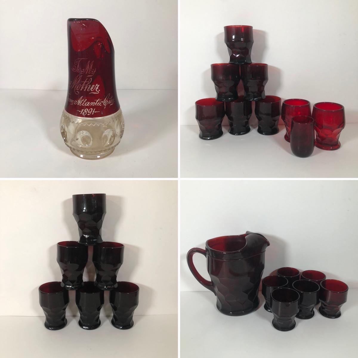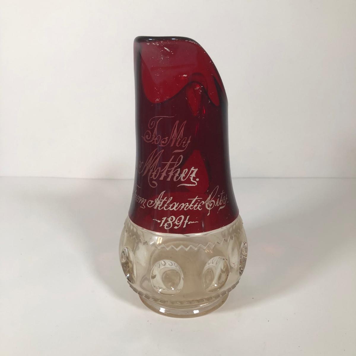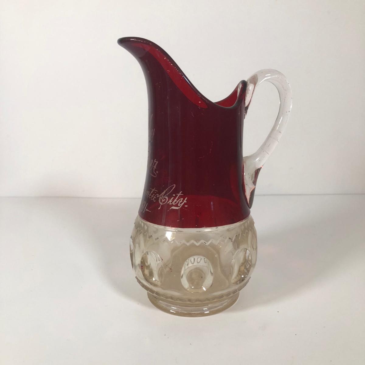 LOT 278L: Antique 1891 Atlantic City Pitcher & Ruby Red Glassware
