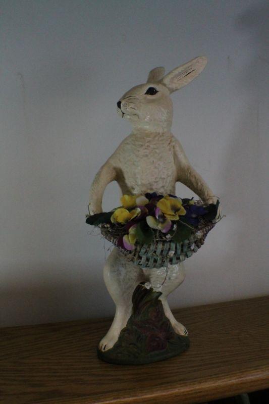 LOT #279: Vintage MONIâ„¢ Easter Bunny standing holding basket of Flowers Holiday Deco
