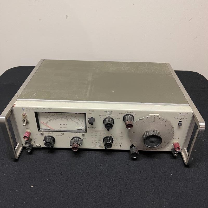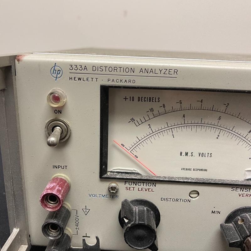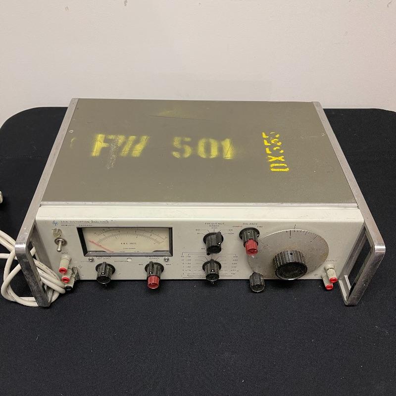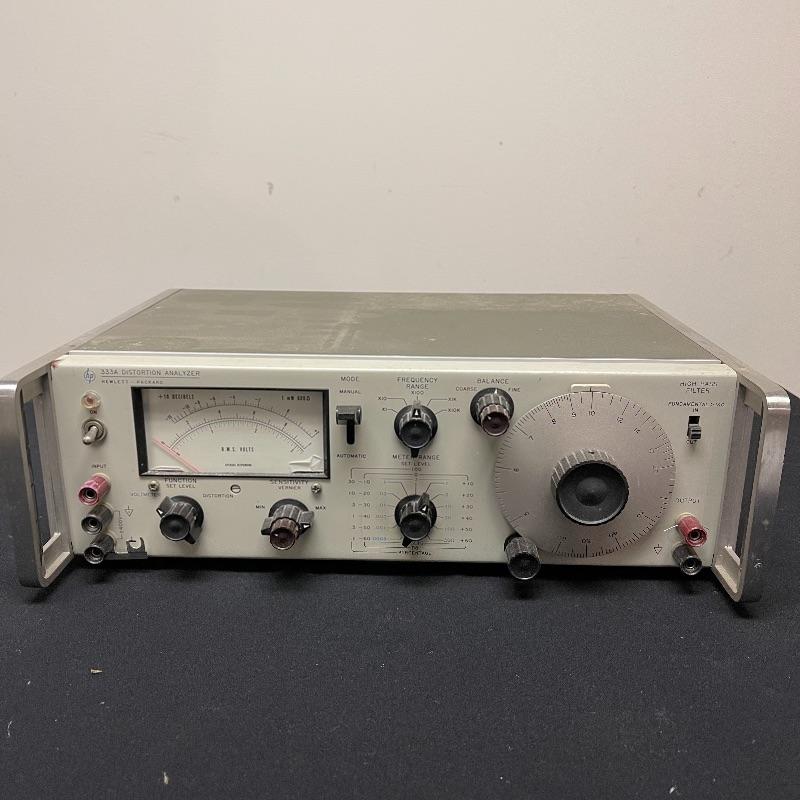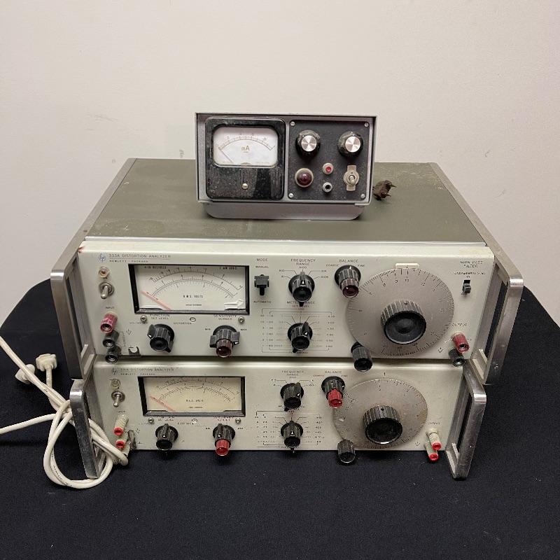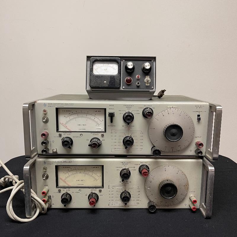 HP 333A and 331A distortion analyzers and a test oscillator. The small oscillator was made in Japan. The 331A model comes with a power cord and the 333A model does not.